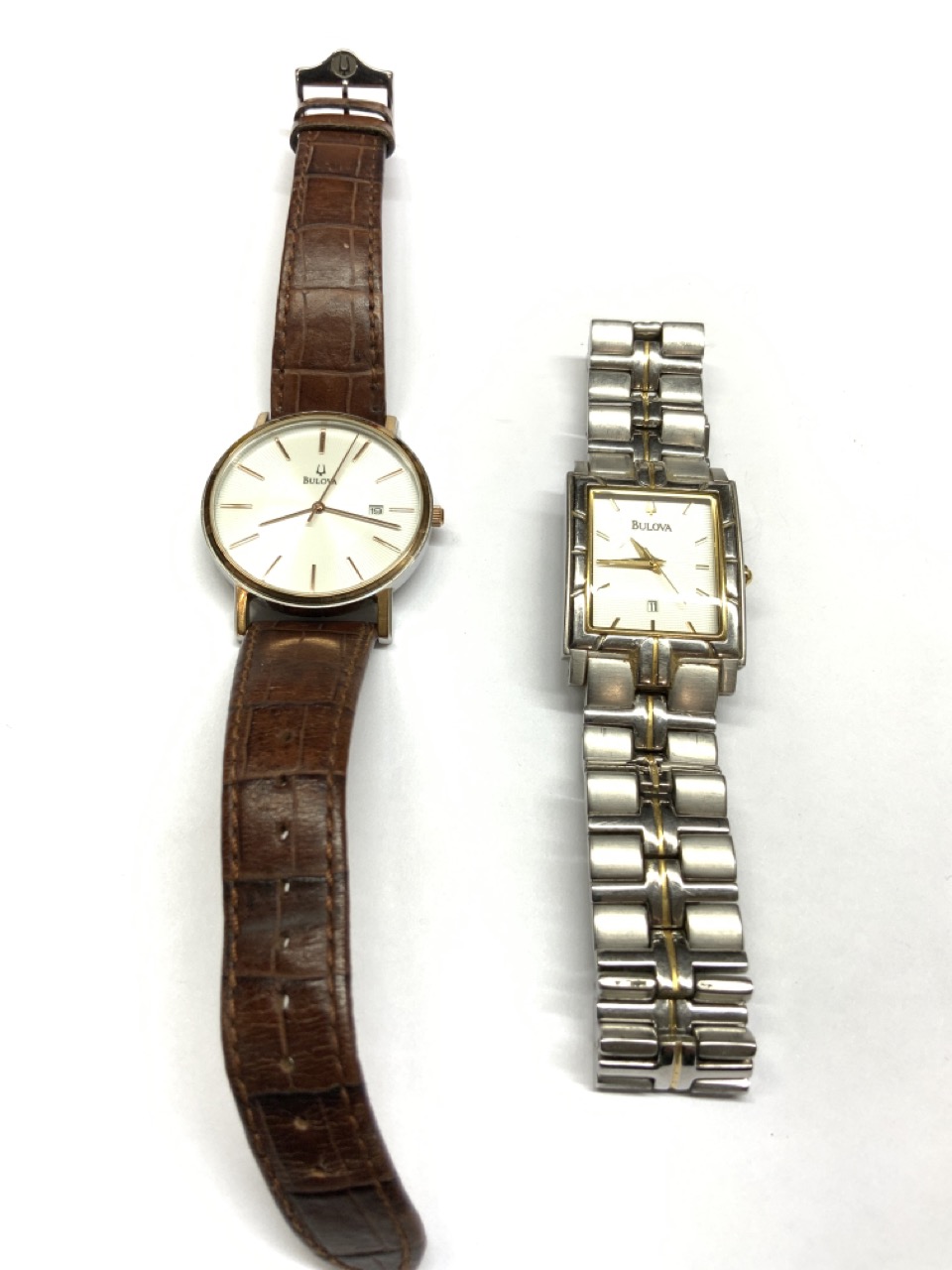 Two (2) Bulova Watches w/ Leather and Stainless Steel Bands
