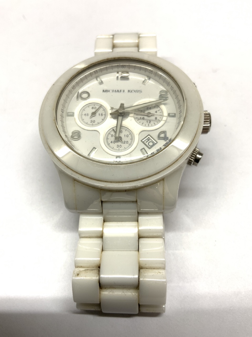 A White Michael Kors Chronograph Watch in Original Leather Box