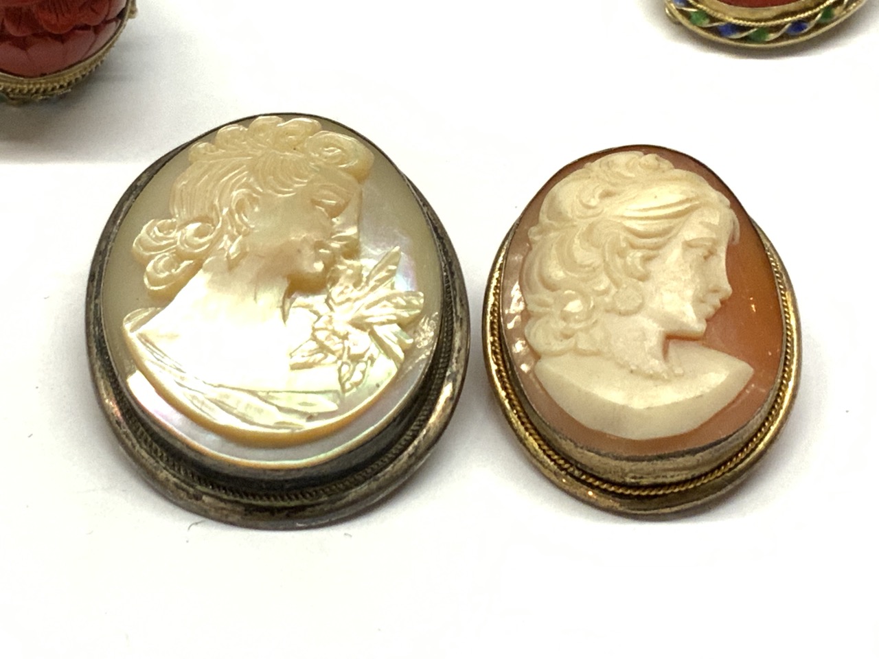 Two (2) Silver Cameo Pins