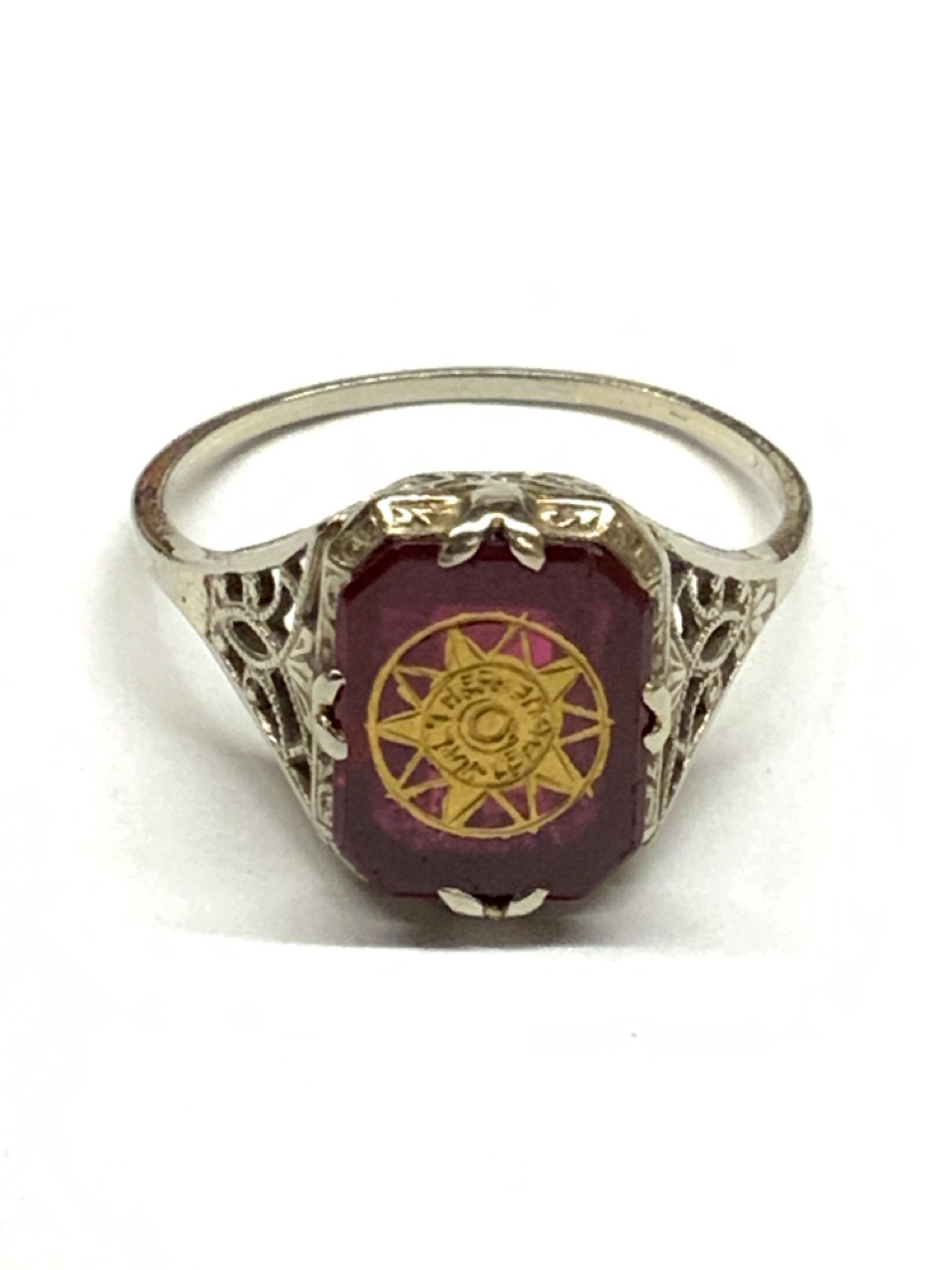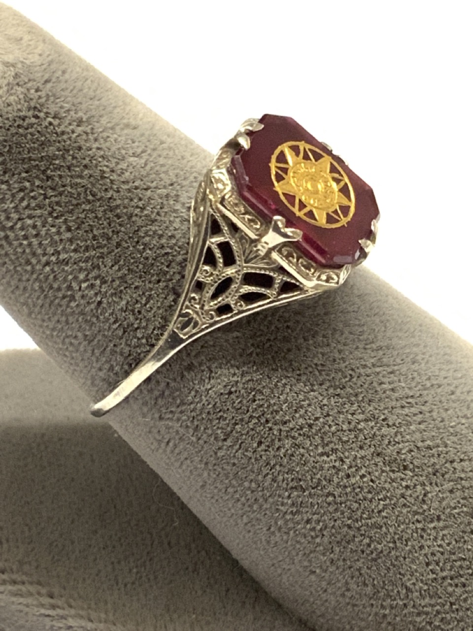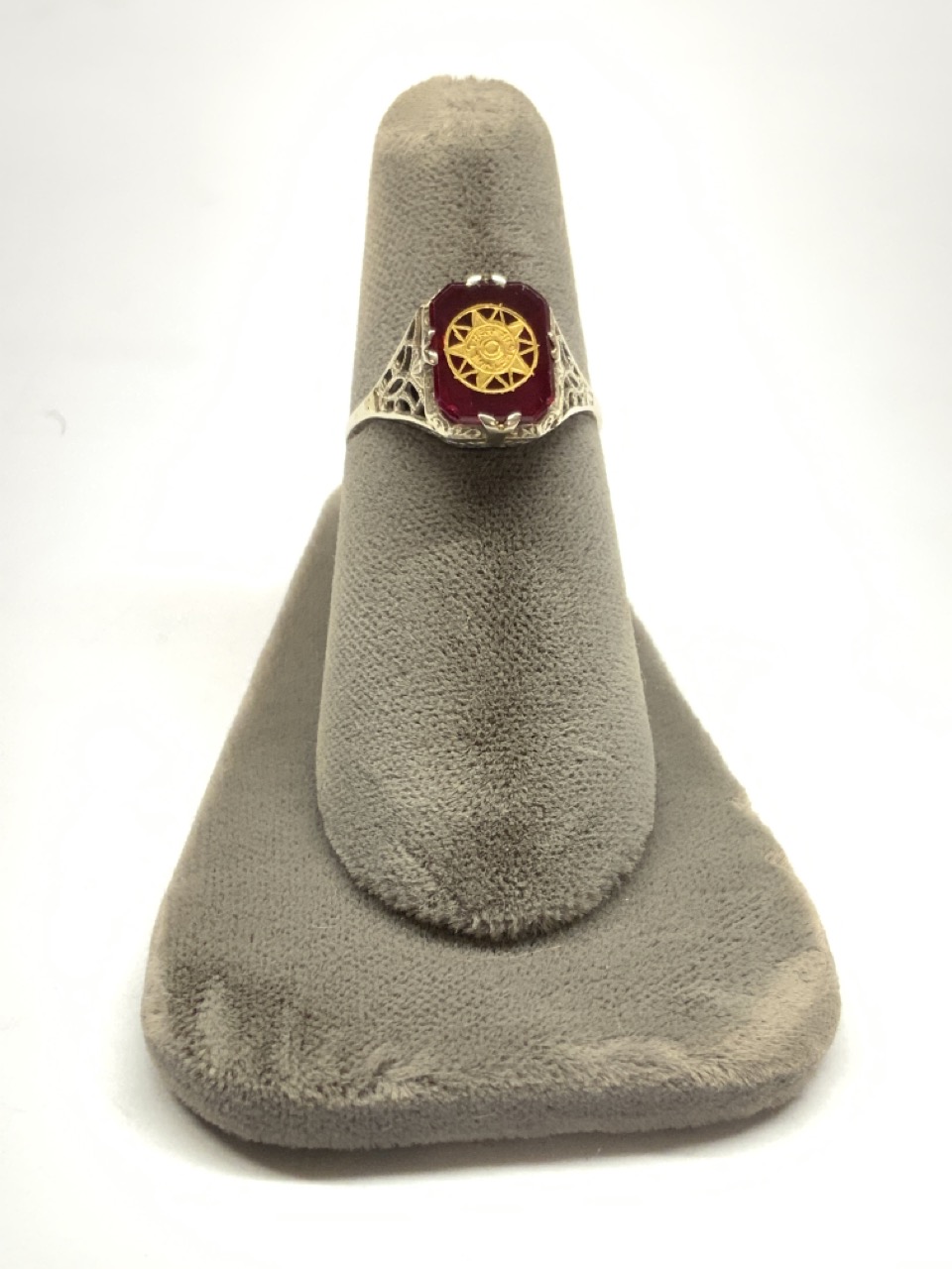A 14k yellow gold and ruby star Insignia ring. Illegibly. Total Weight: 2.88g