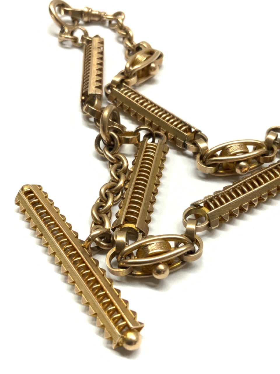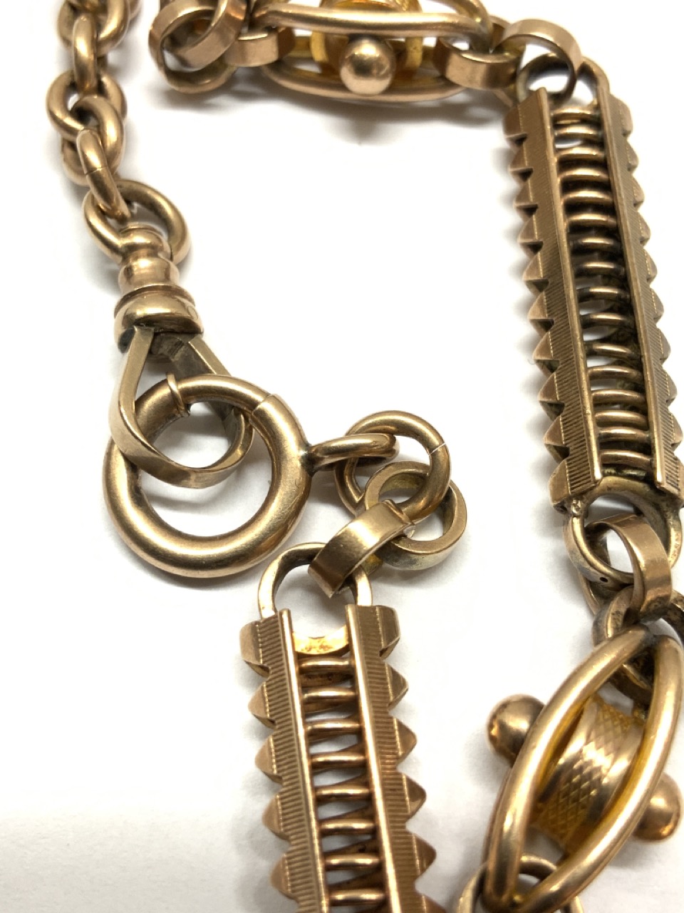 A Victorian 14K yellow gold men’s pocket watch fob chain. A very nice example.