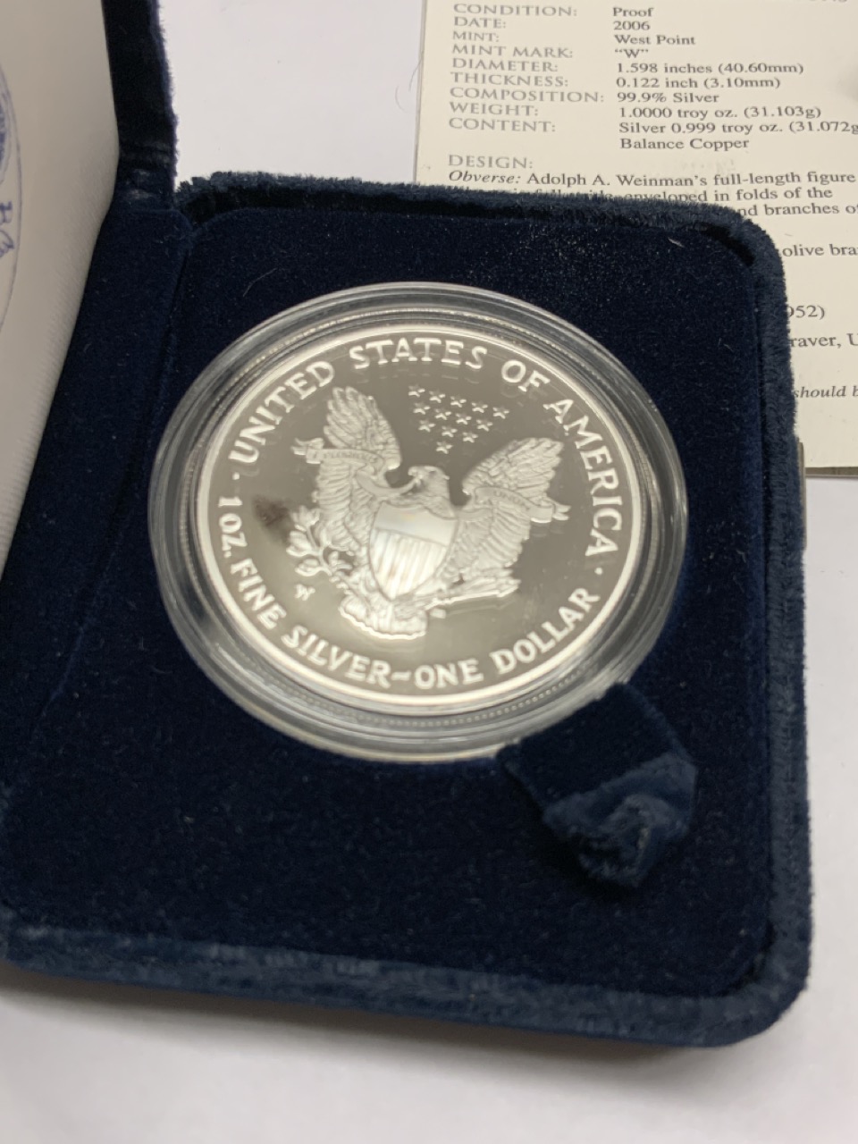 2006 American Eagle Dollar Proof From West Point Mint. Housed in case.
