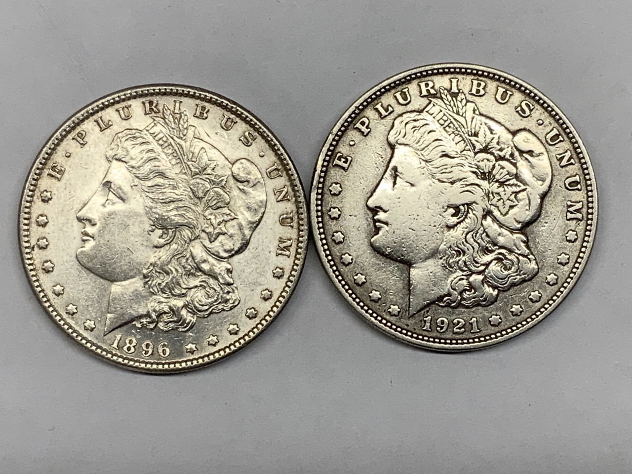 1896 and 1921 Morgan Silver Dollars