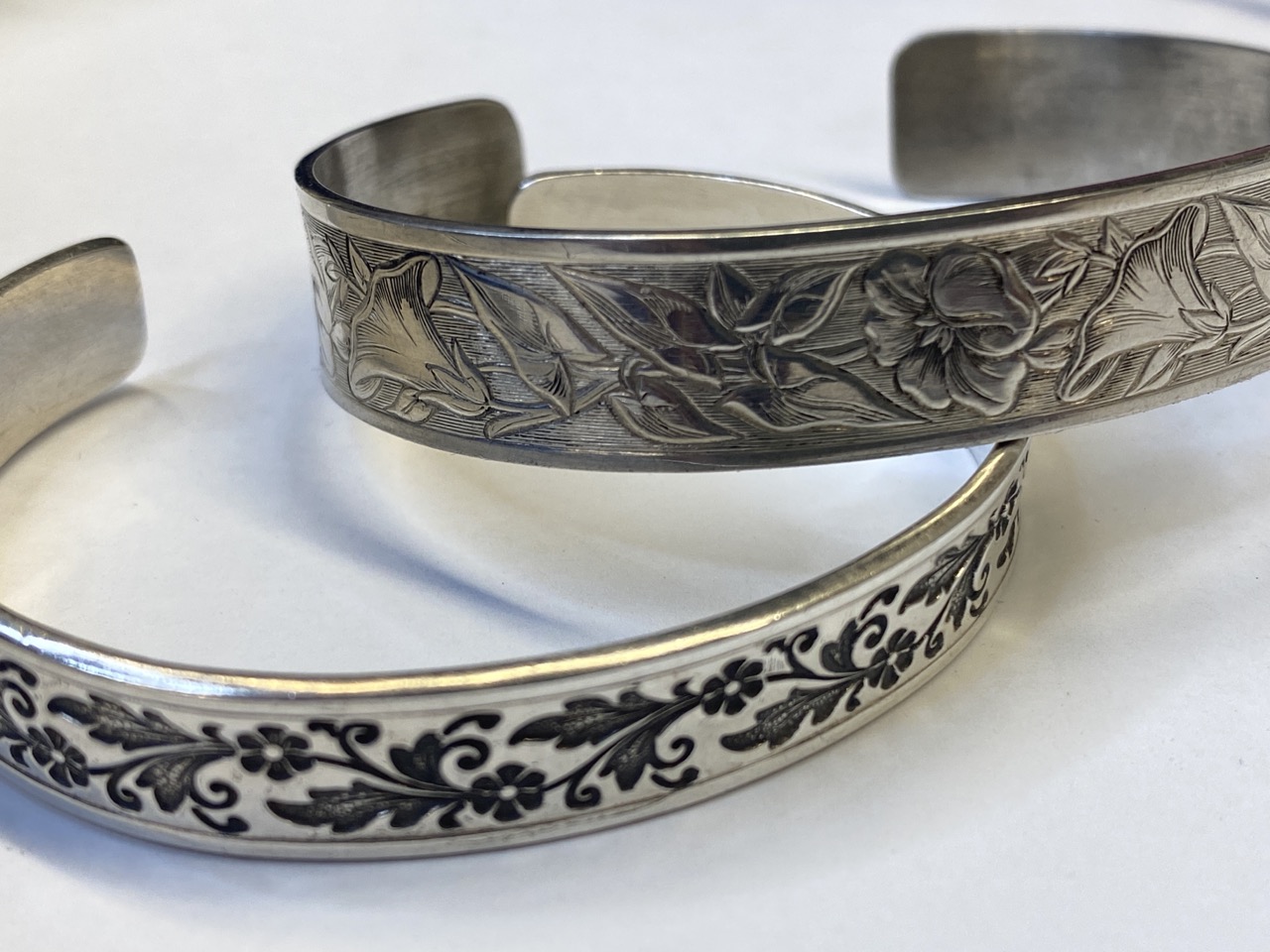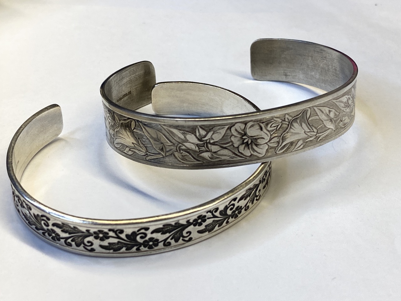 Two (2) Ed Levin Sterling Silver Engraved Cuff Bracelets.