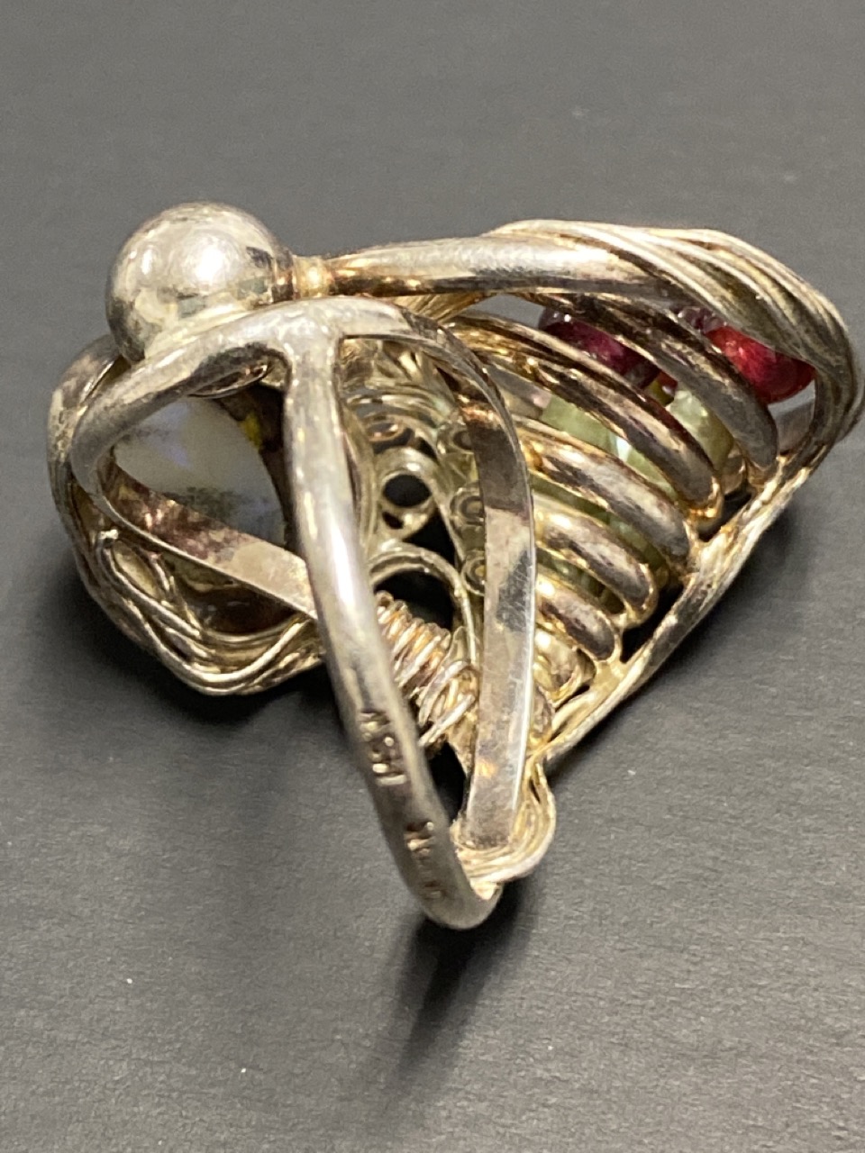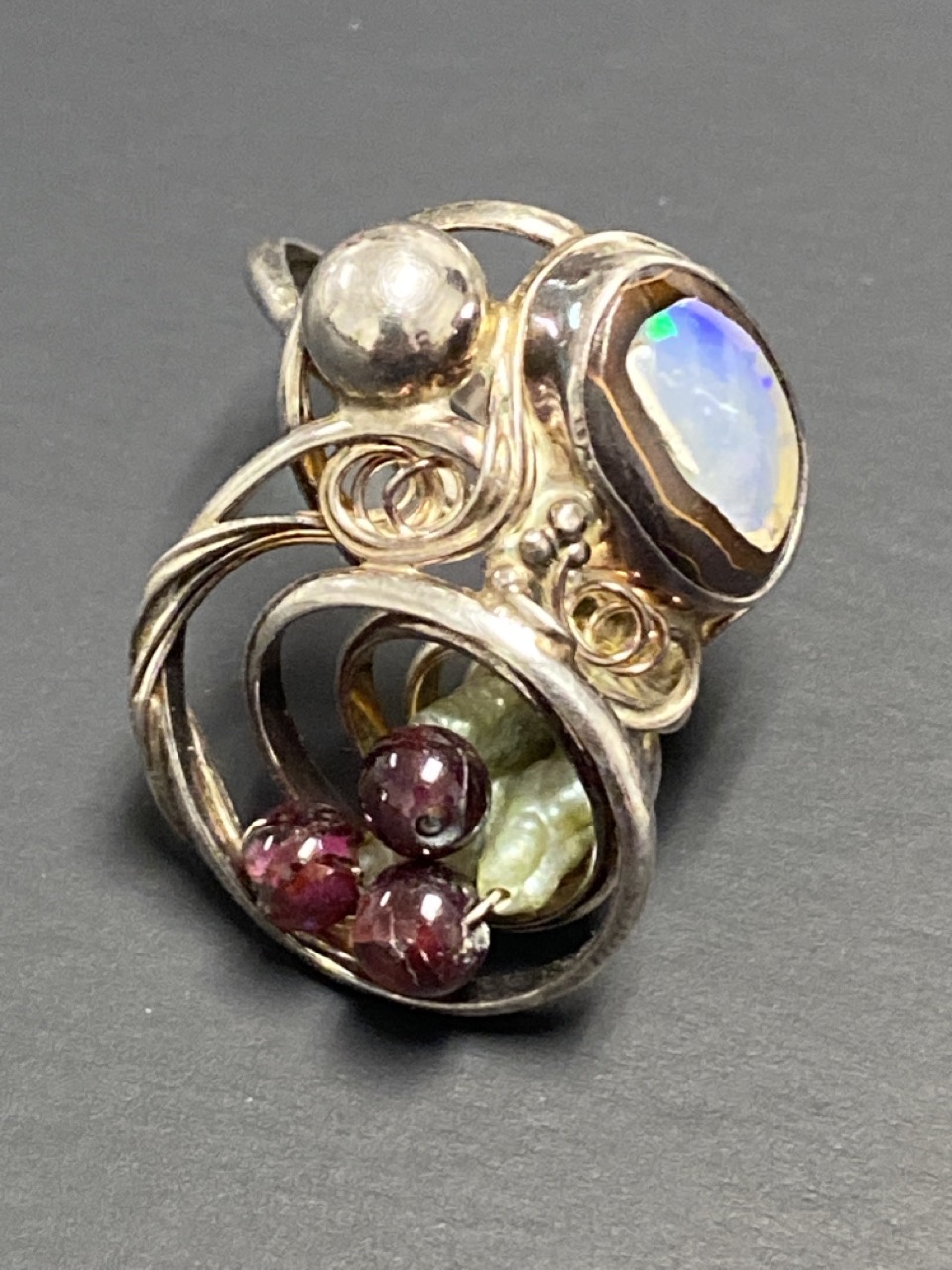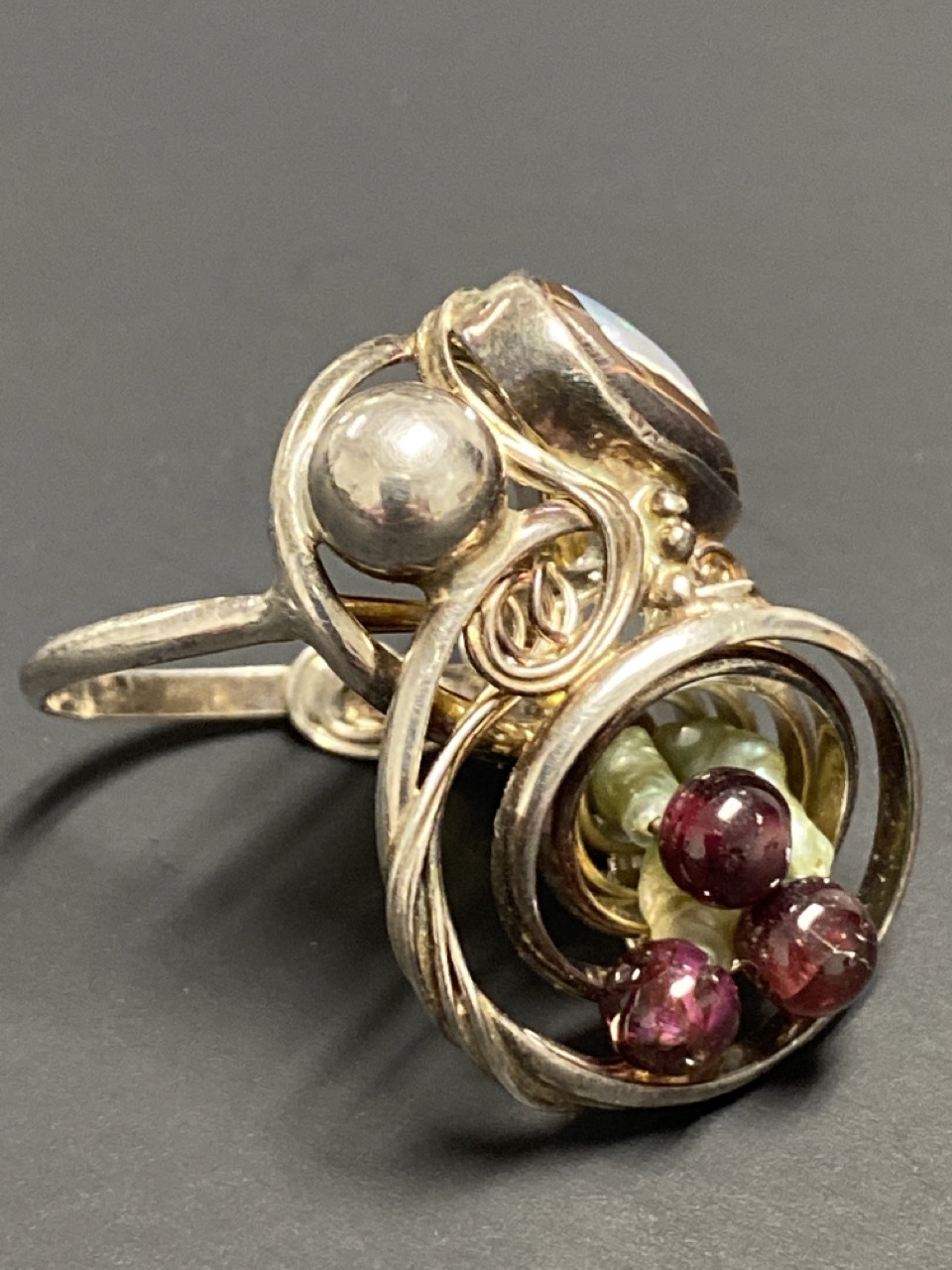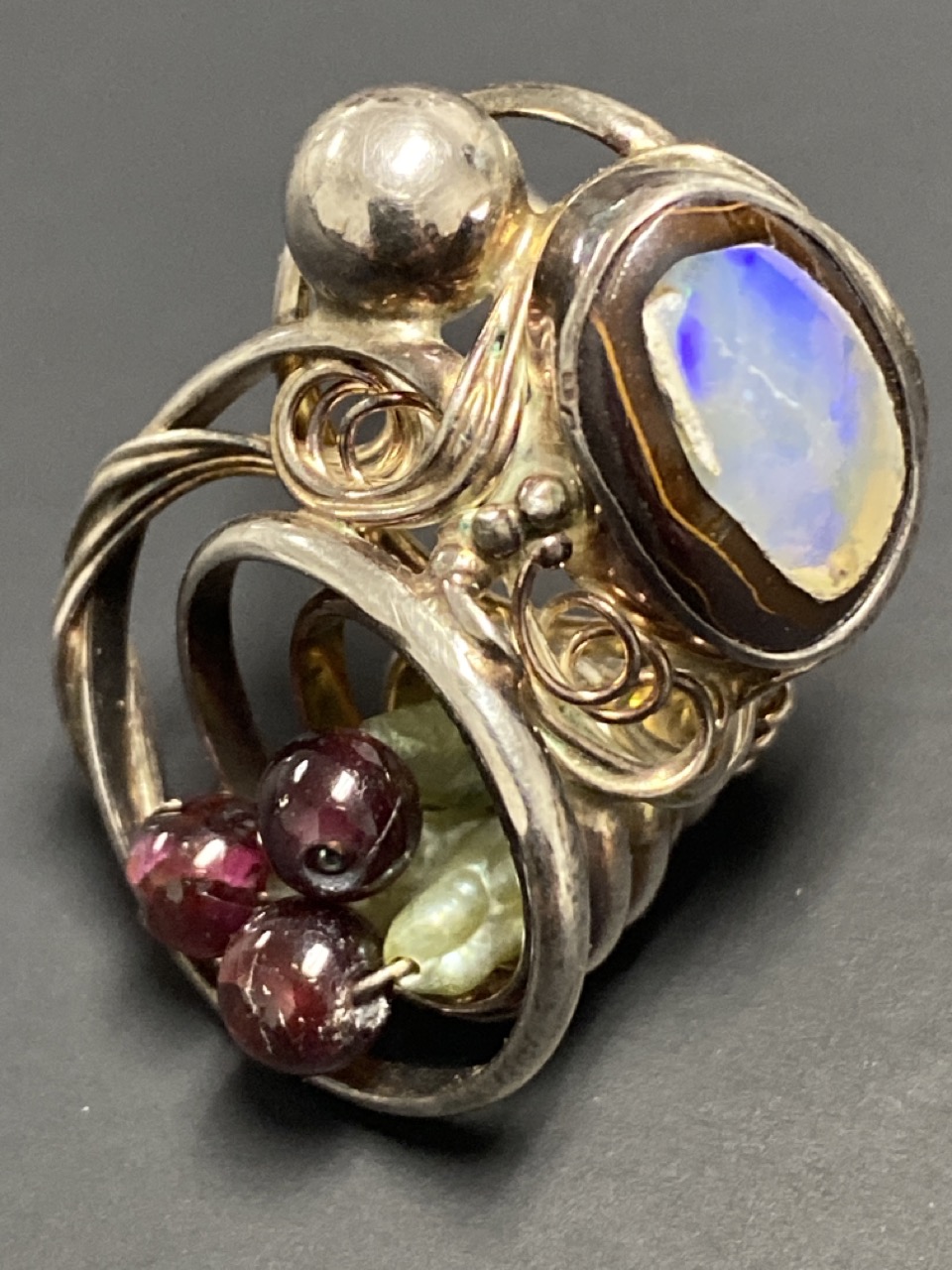 Marius S. Winograd (Polish/American) Original Artisan Piece.Sterling Silver Boulder Opal and Garnet Ring.