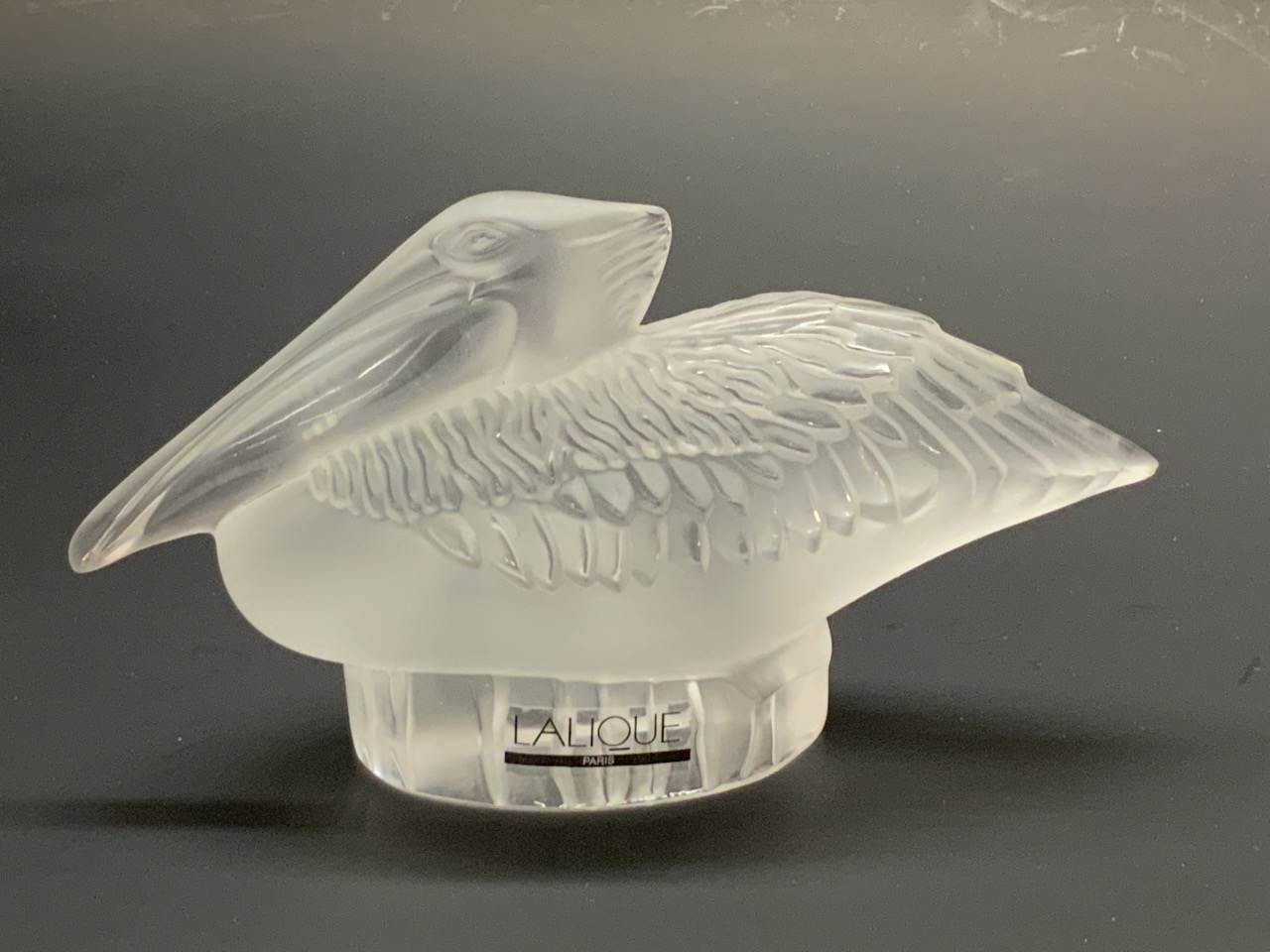 Lalique, France Pelican art glass sculpture.