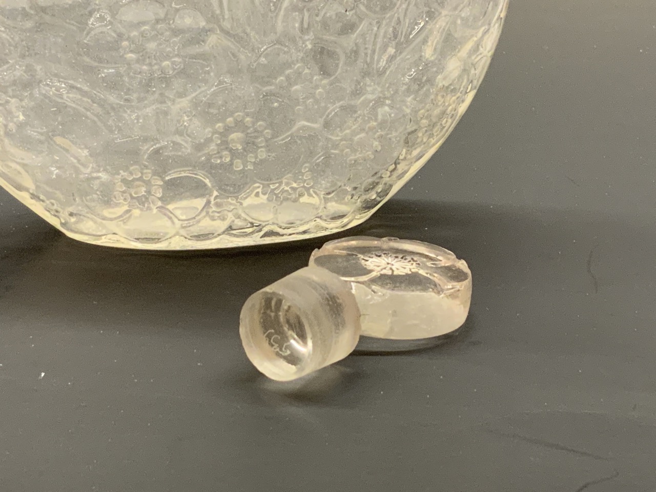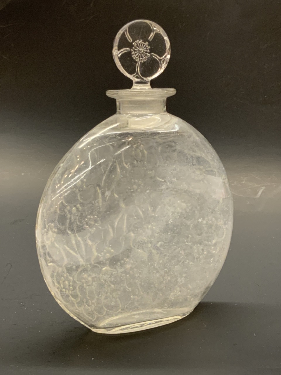 Rene Lalique D'Orsay Le Lys (Lily) glass perfume bottle.