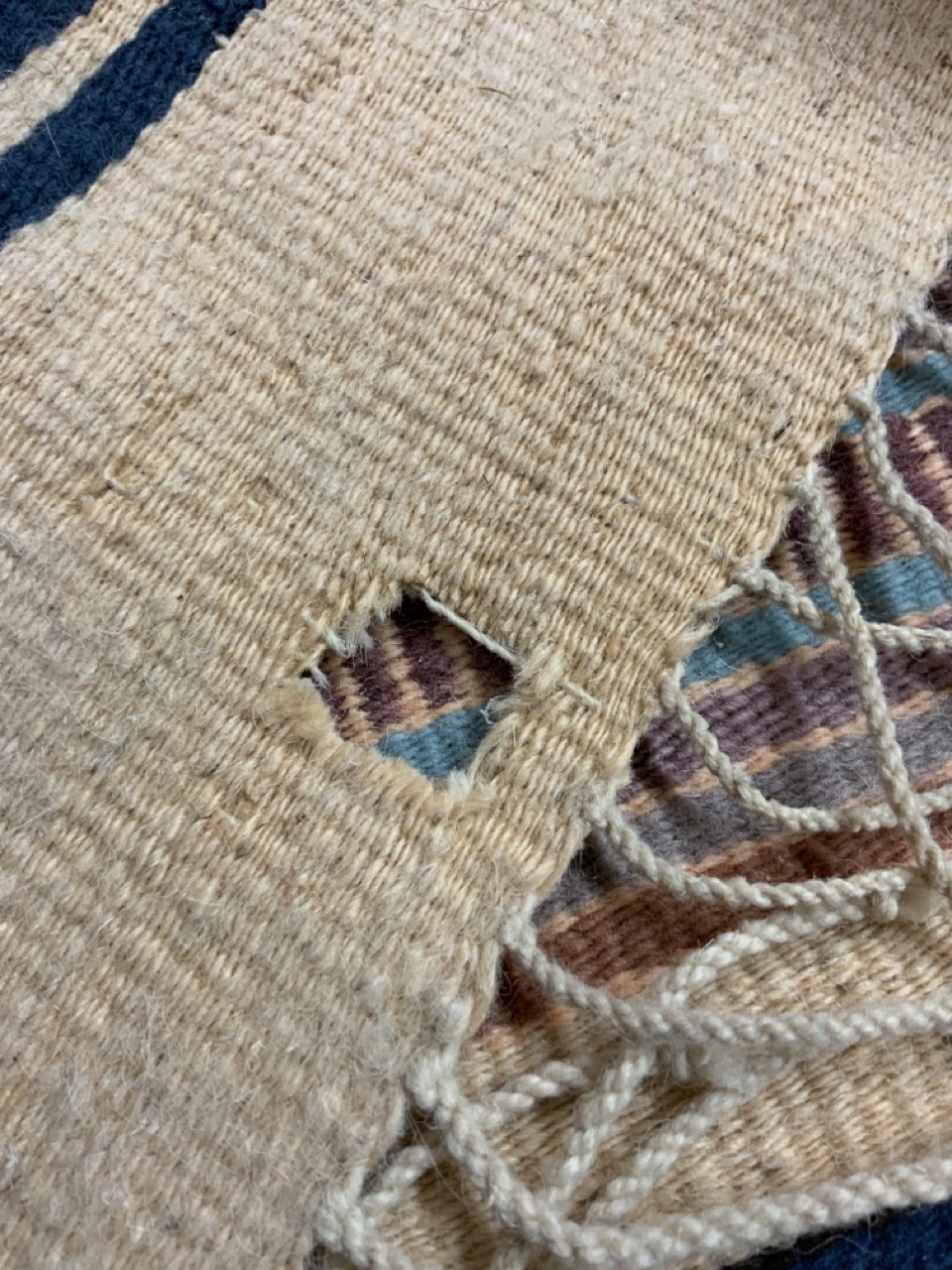 A vintage American Indian "Navajo Tribe" hand made rug.