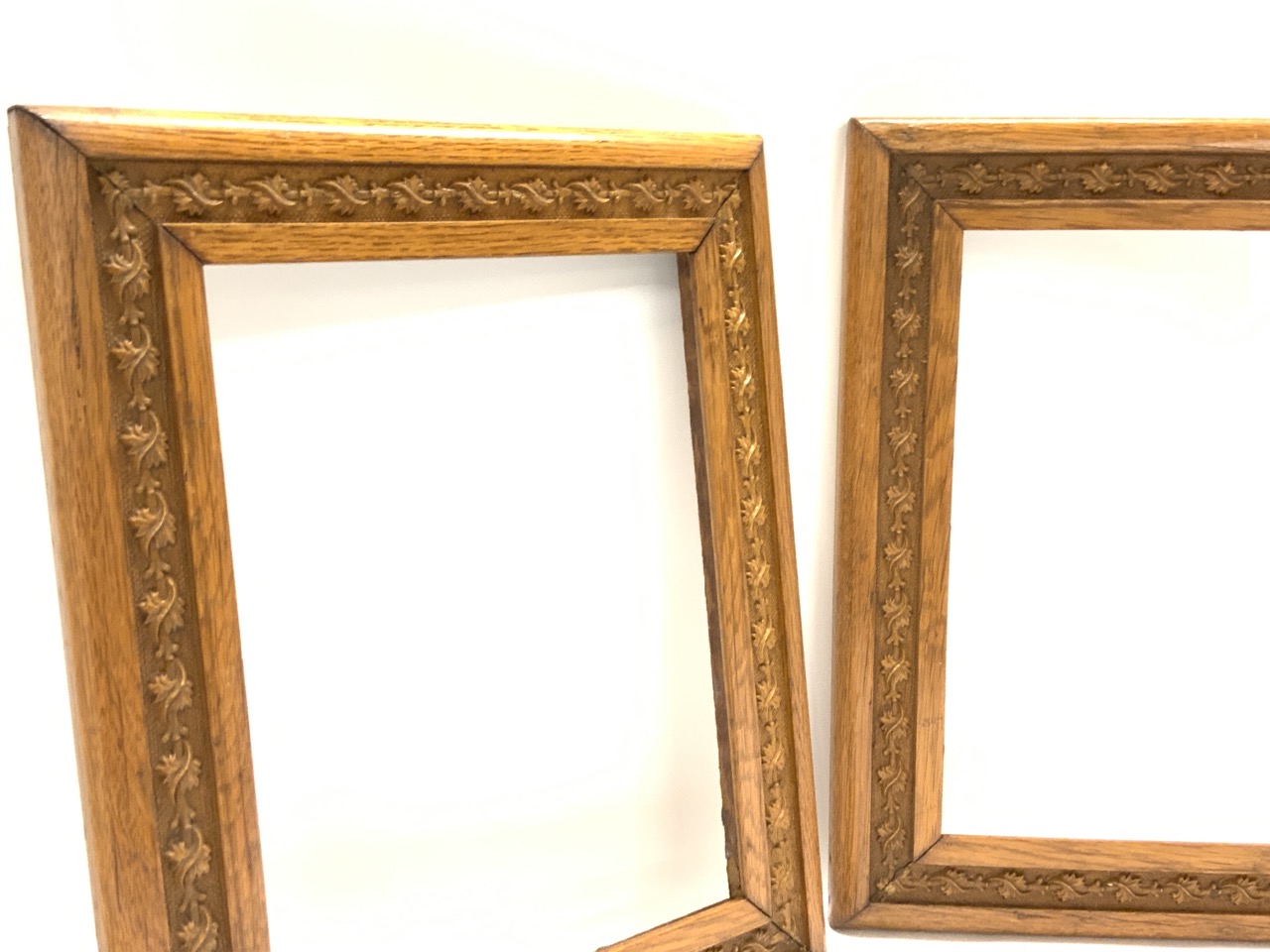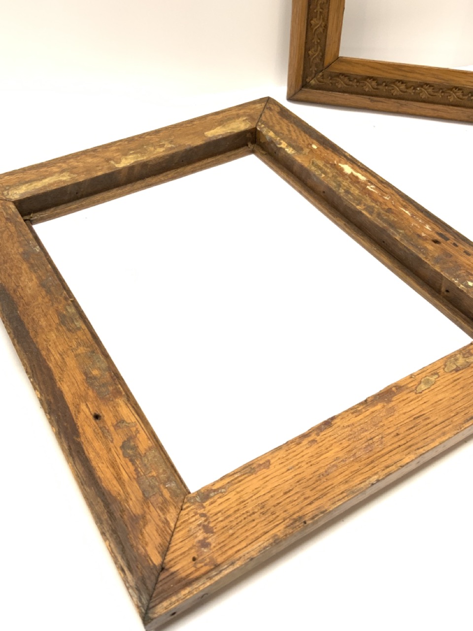A pair of antique oak hardwood frames.