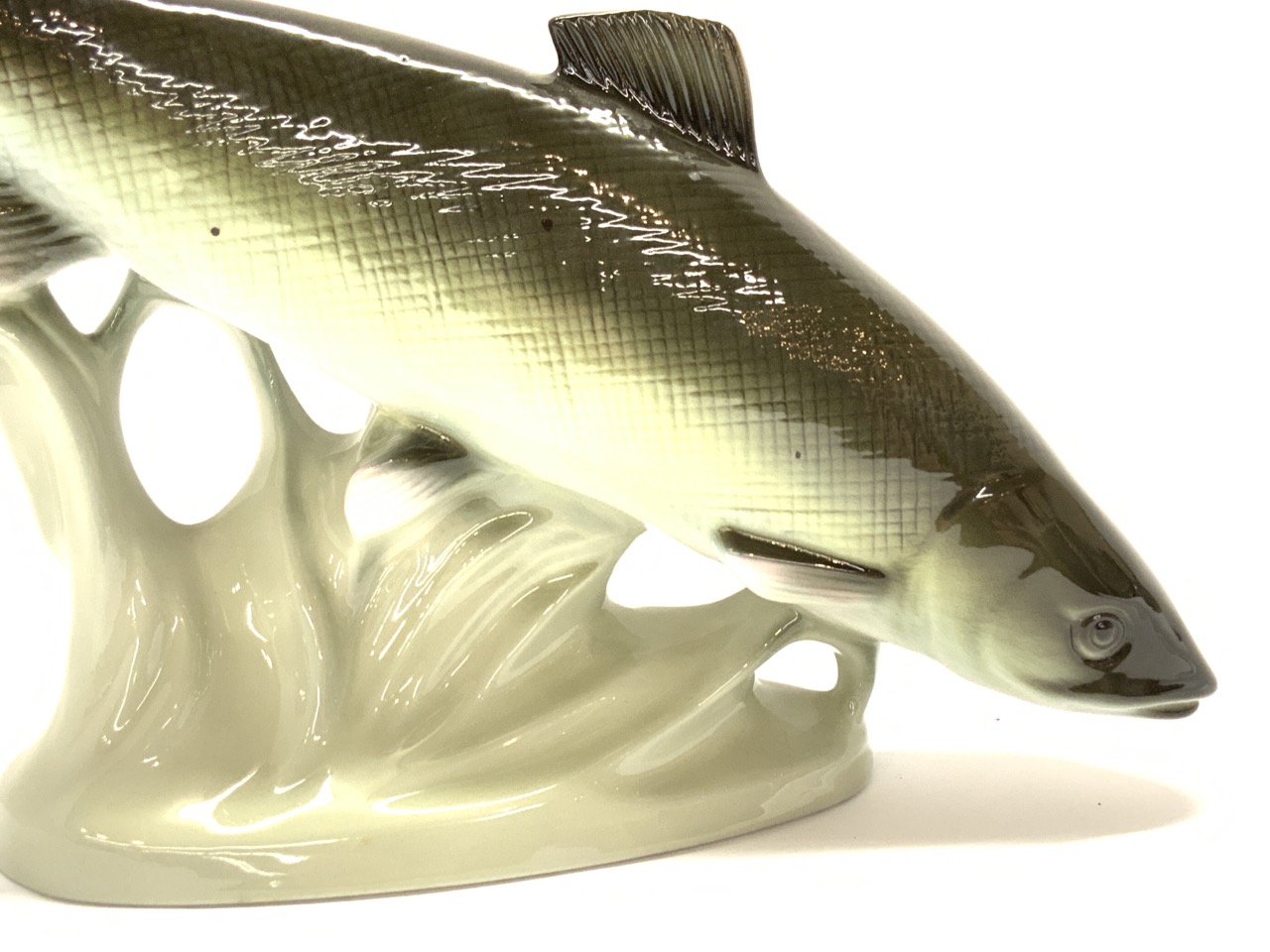 Large Royal Dux Porcelain Trout Sculpture.