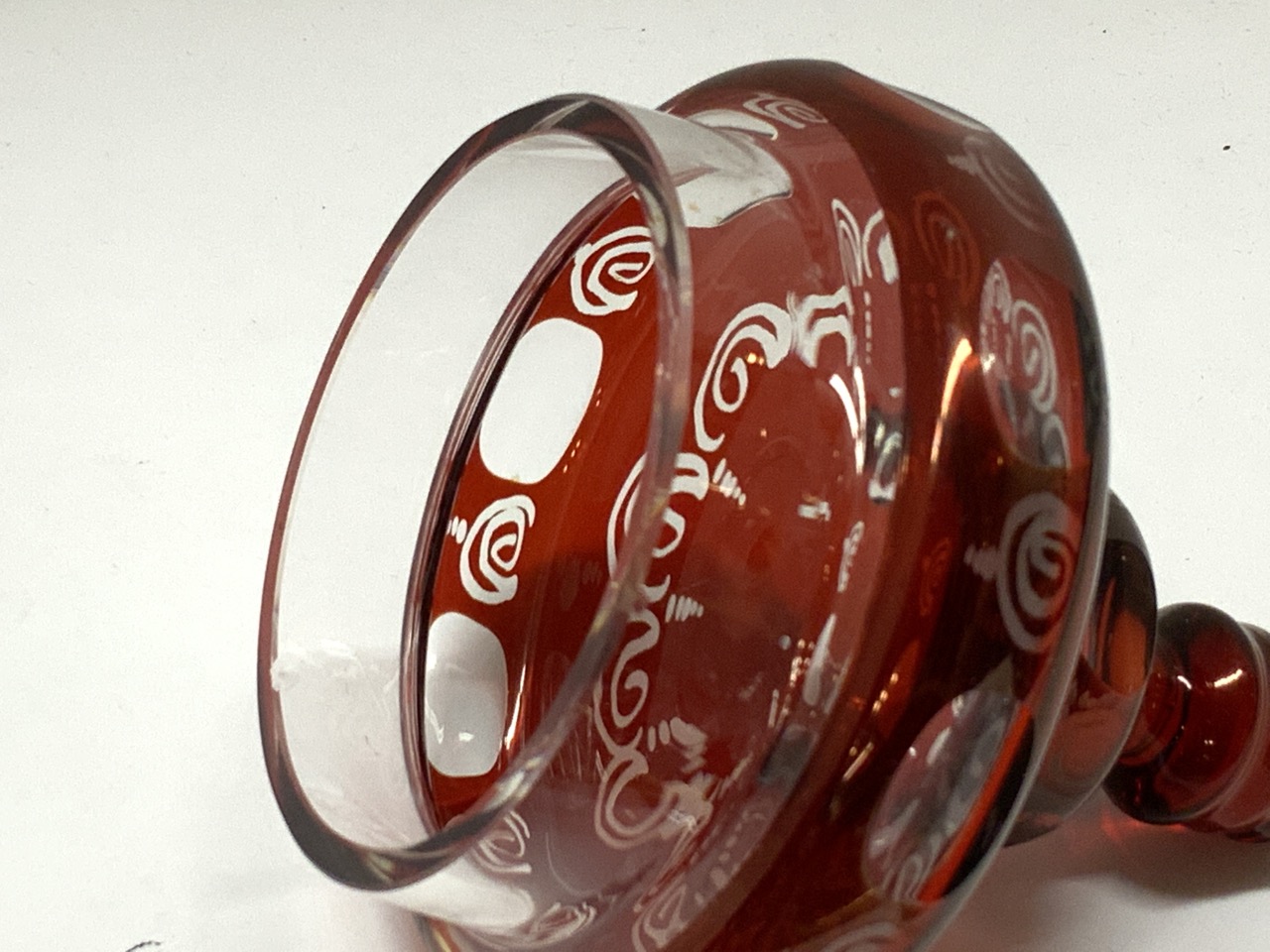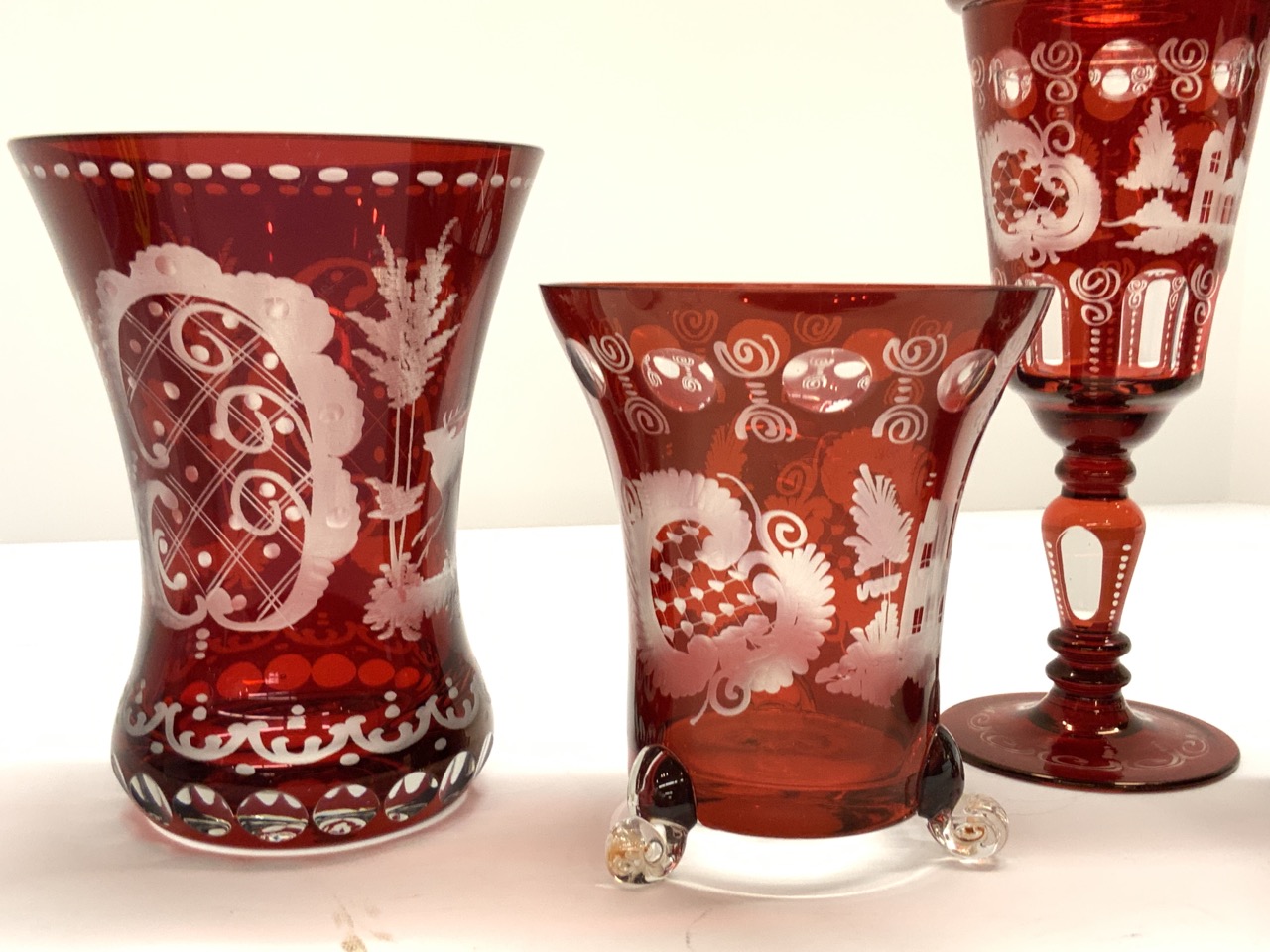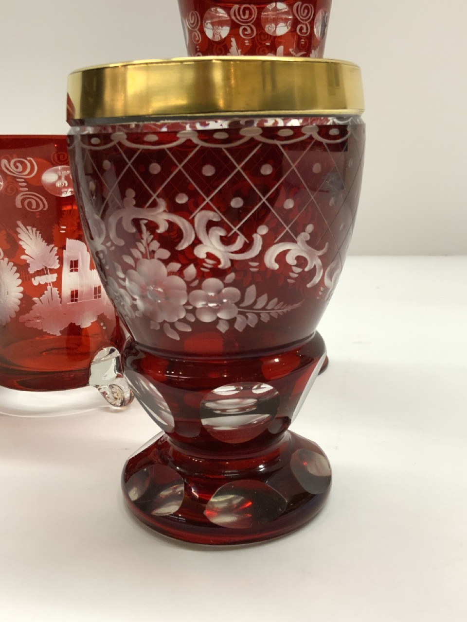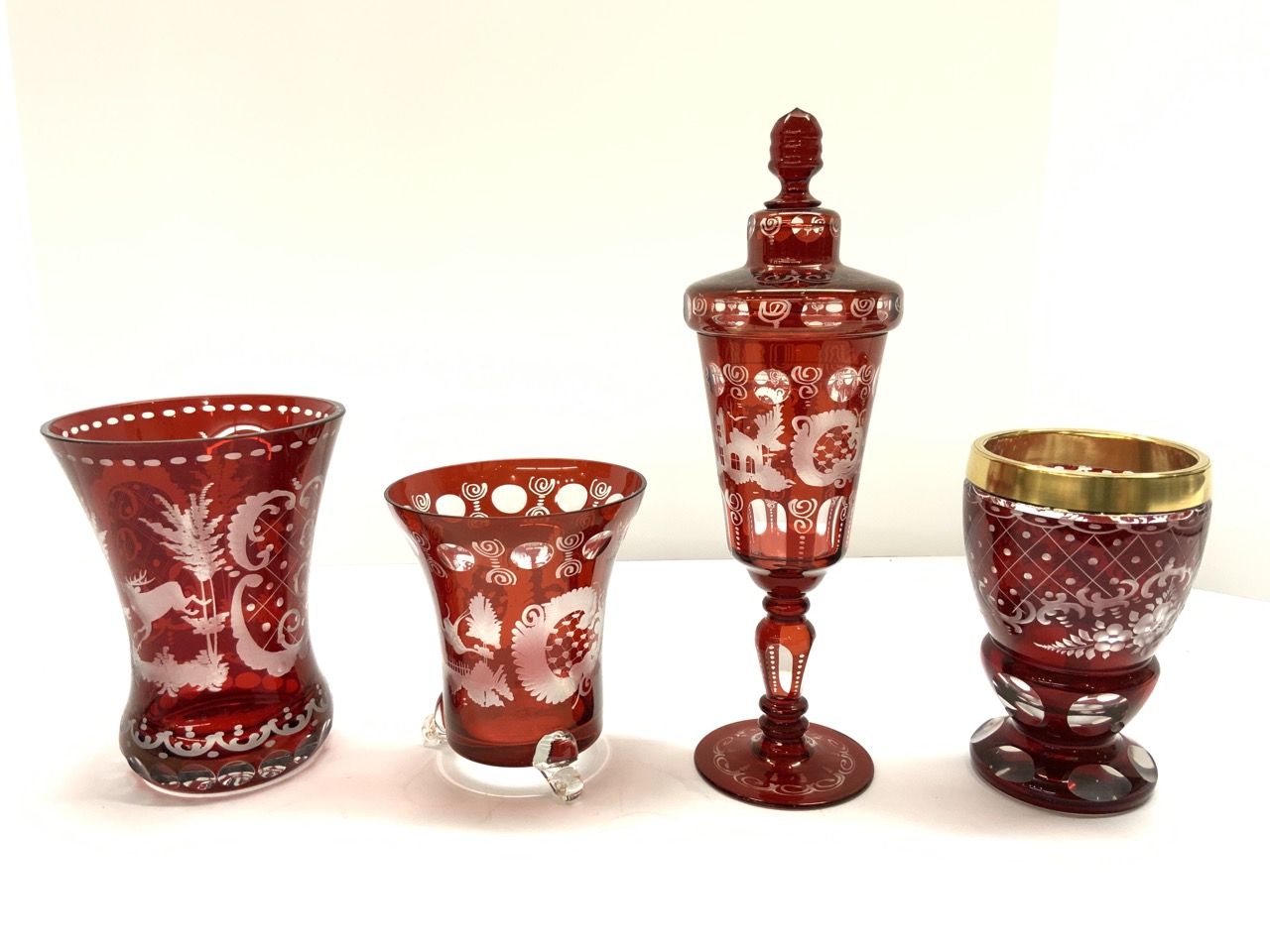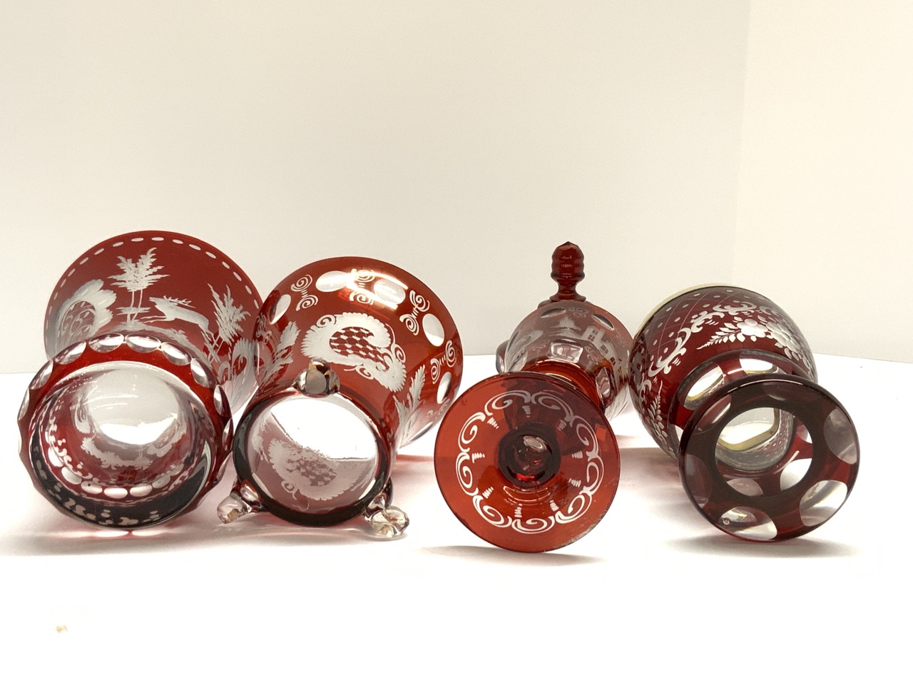 Four (4) Piece Ruby Cut To Clear Antique Glass.