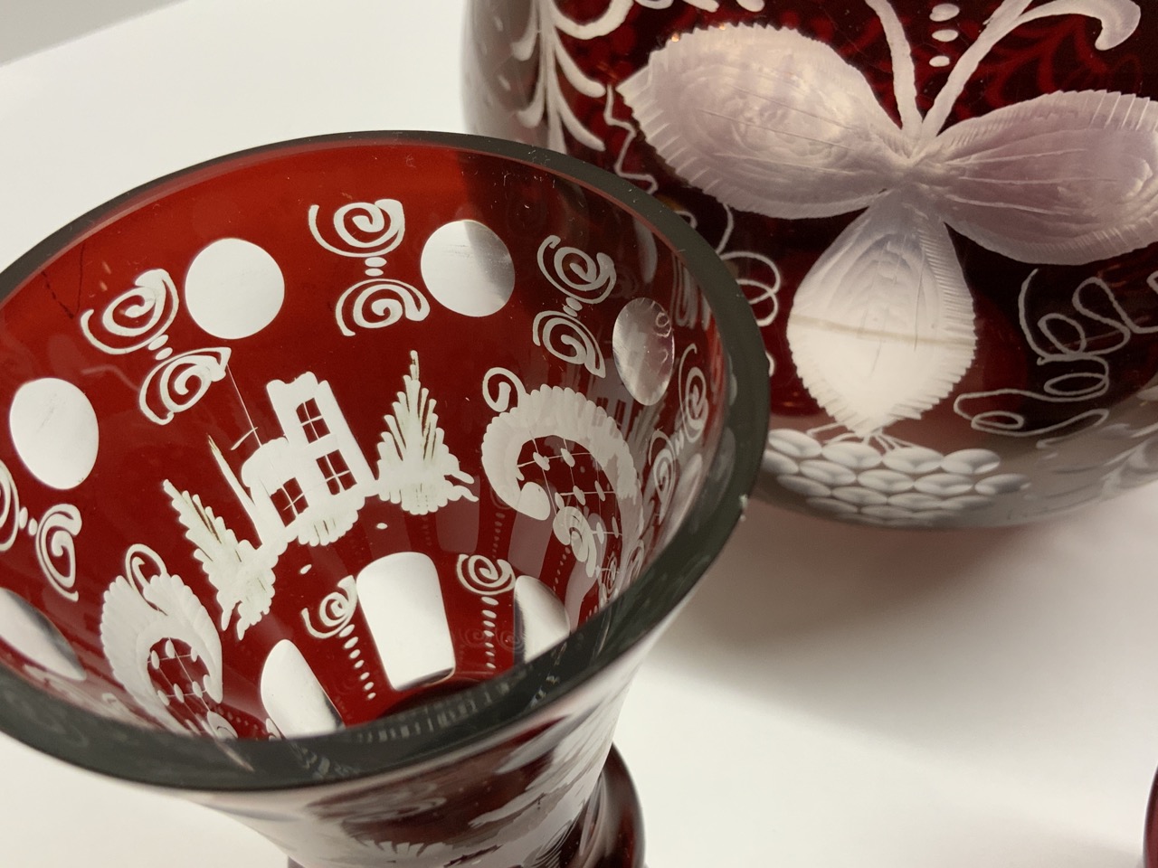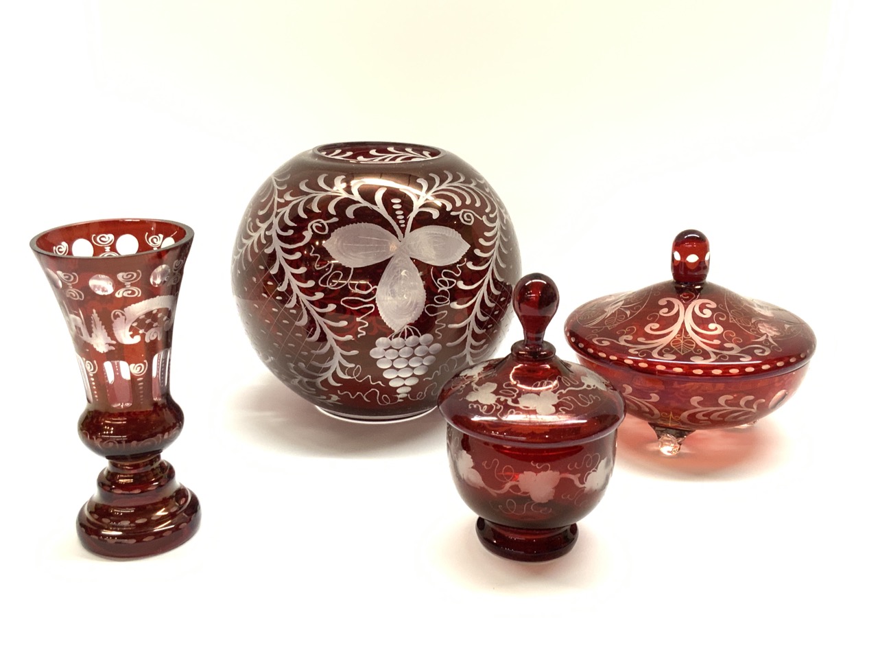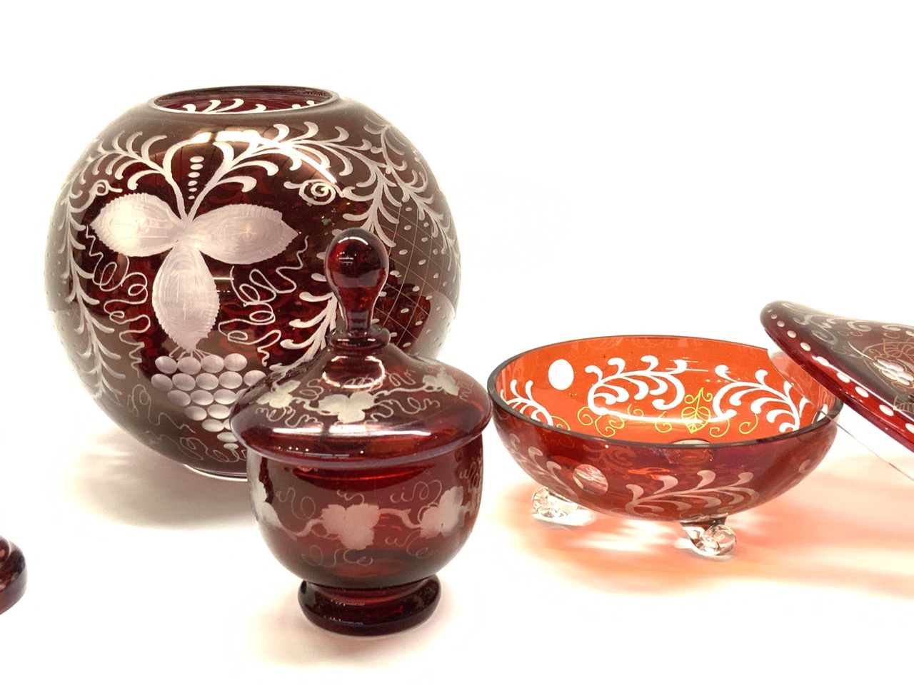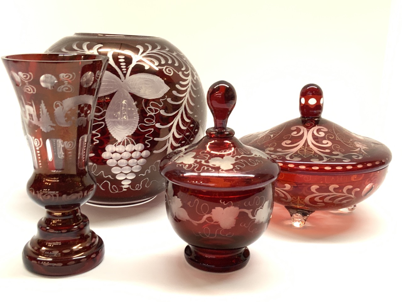 Decorative: We are pleased to have an offering of several pieces of Lalique including works signed R. Lalique. Lion, Poisson Bowl, Rare commercial French perfumes, sculptures, bowls and more. Fine Vietri italian china, Baccarat, Carlo Moretti, cranberry & ruby cut to clear glass, vaseline glass nut bowl w/ squirrel, Victorian silver plated collection of very high relief New England pieces, Antique copper collection, brass wares, Chelsea ship bell clock, French Mougin bronze clock, Marcus New York horn handled copper and sterling mug, Persian and Chinese carpets. Japanese Samurai robe fragment ,Jacot's 10 tune music box, curiosities and more!