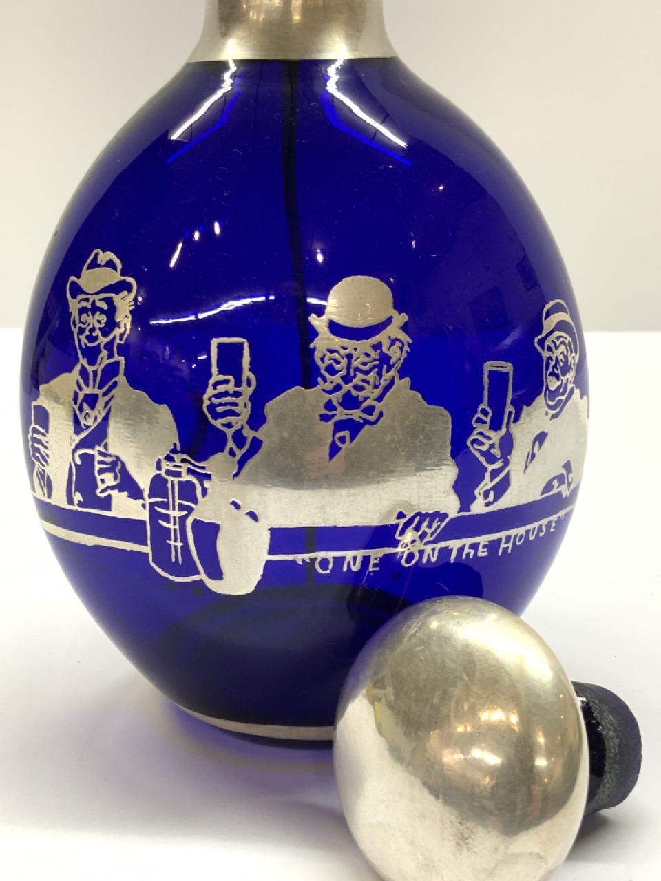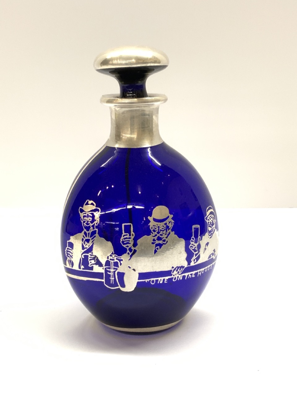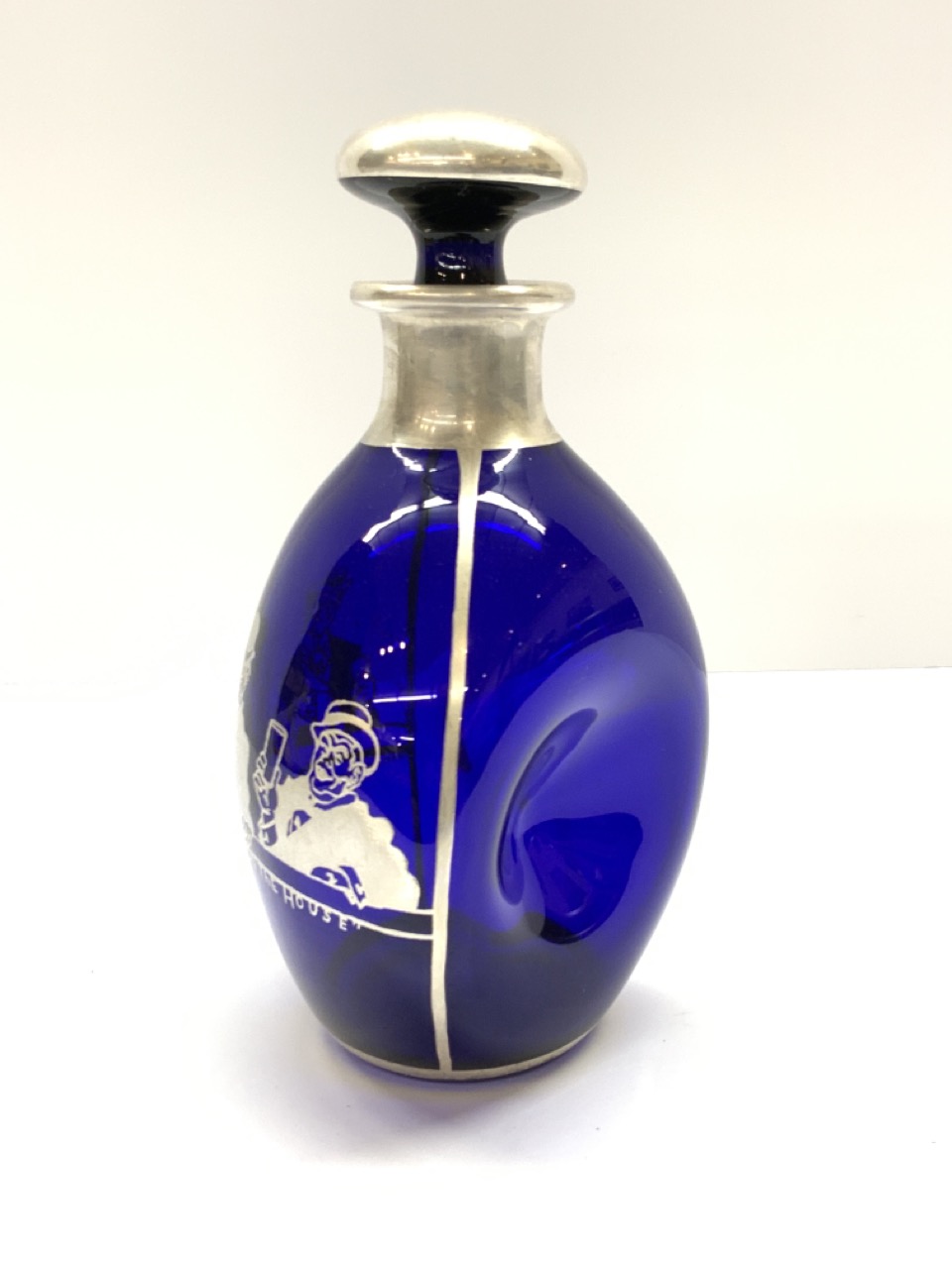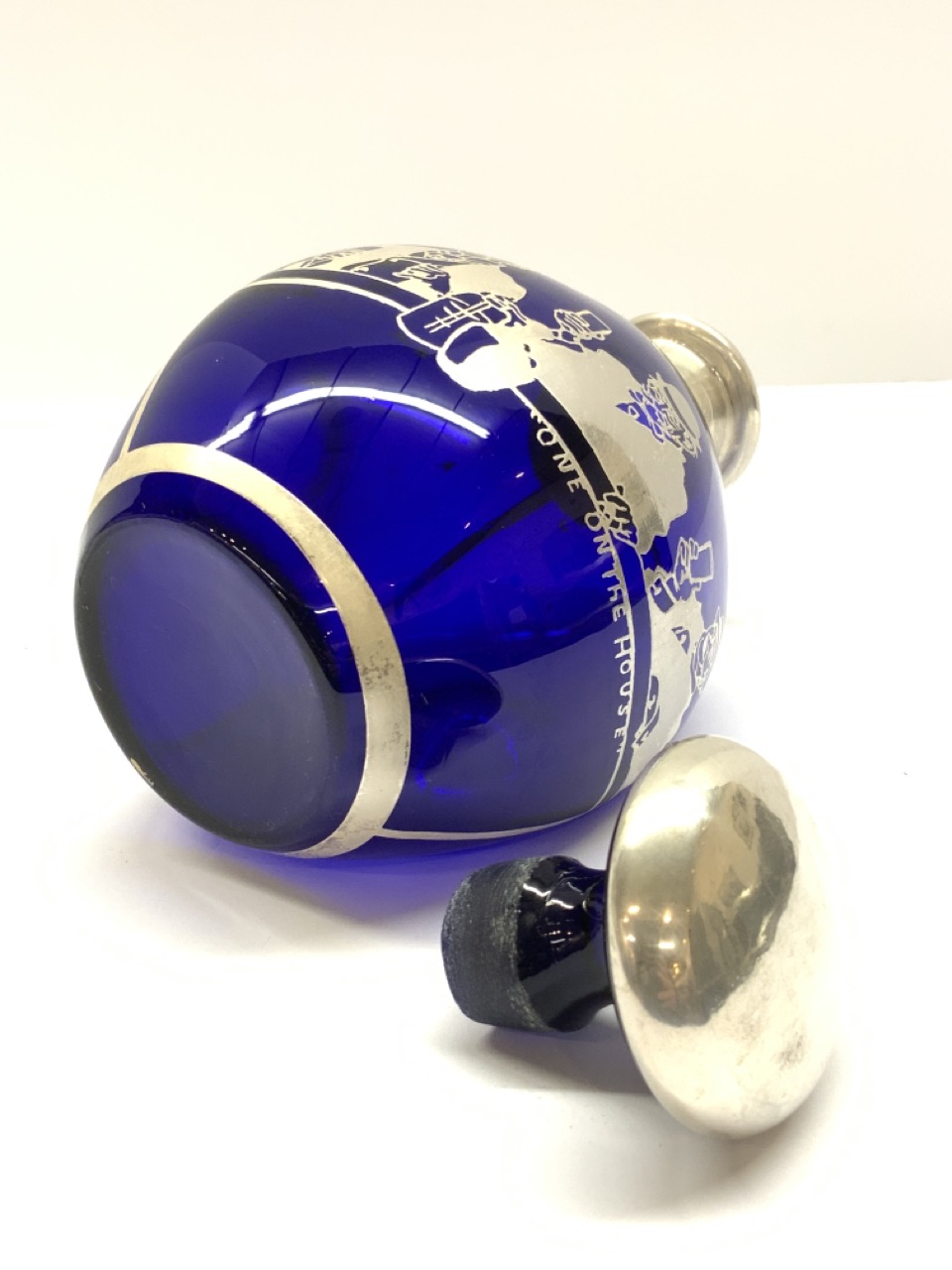 Cobalt blue with sterling silver overlay barware decanter.