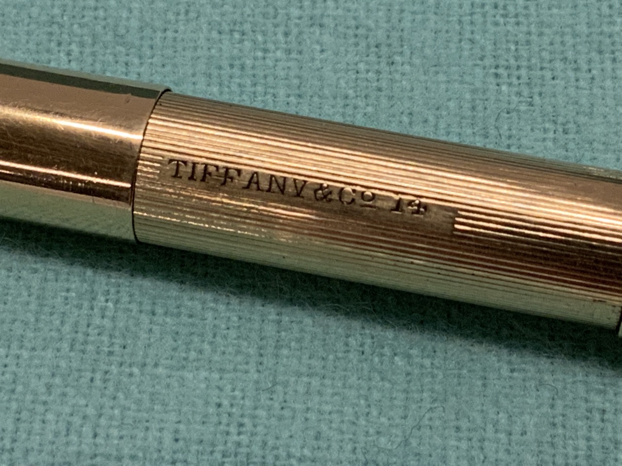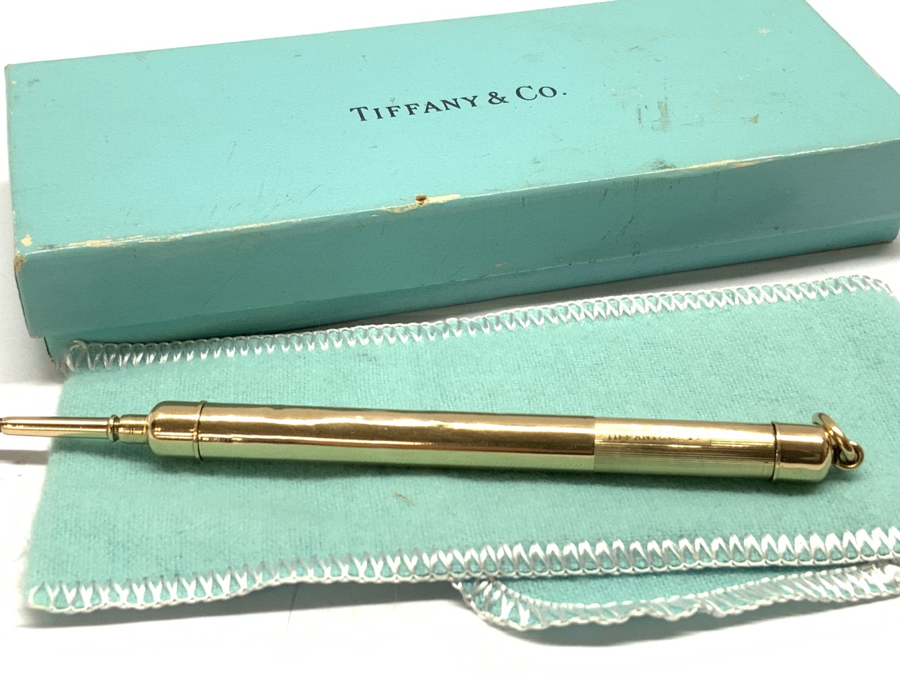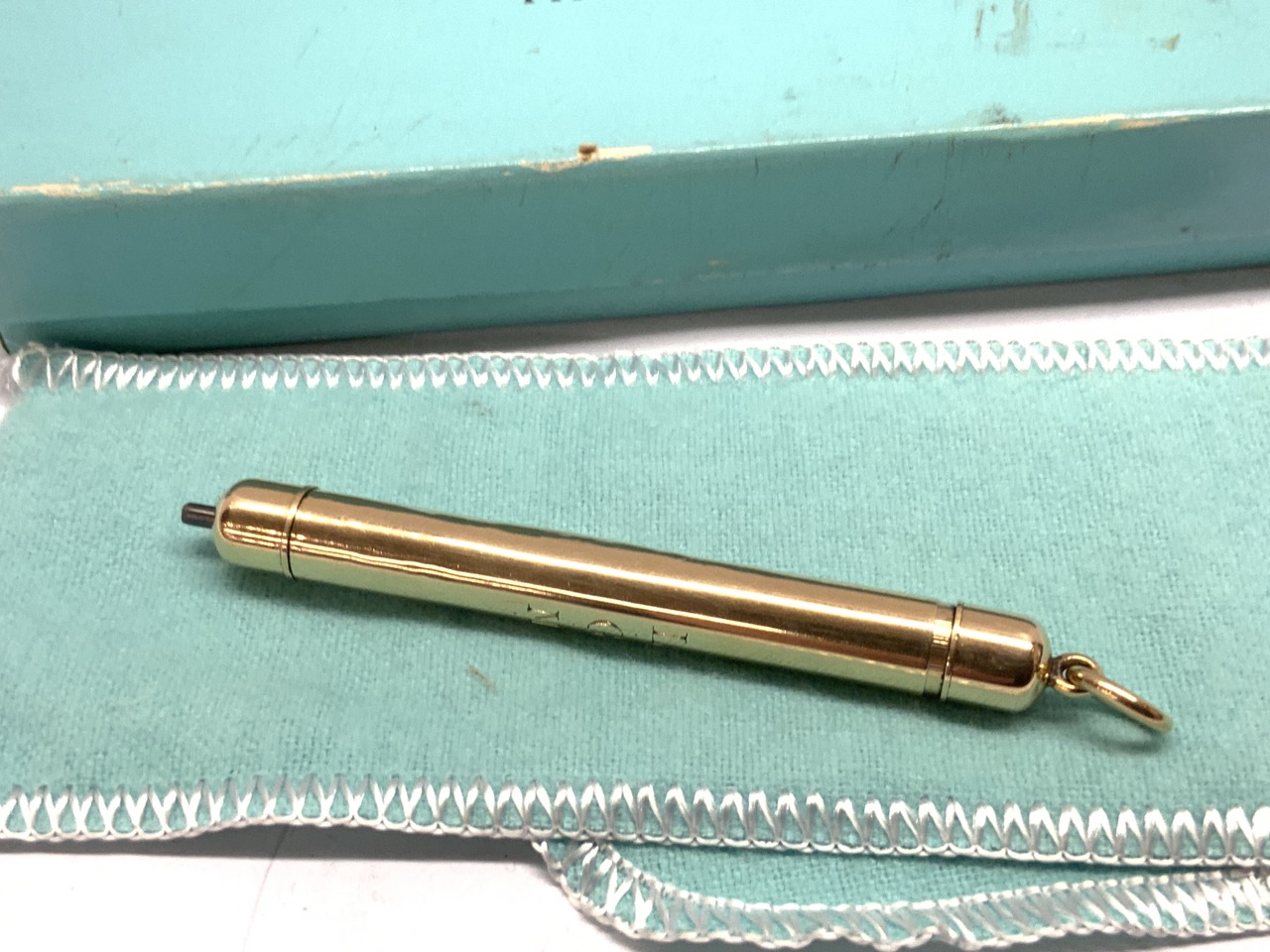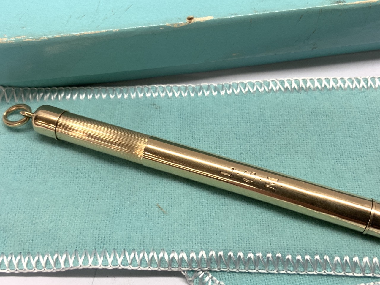 Tiffany And Company 14k yellow gold pencil jewelry pendant. Monogrammed L.G.M.