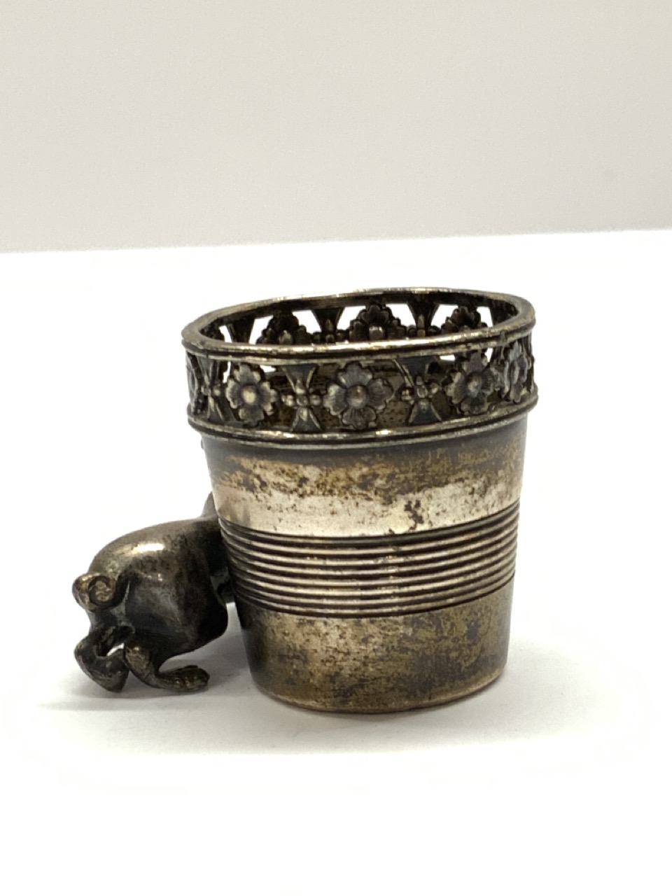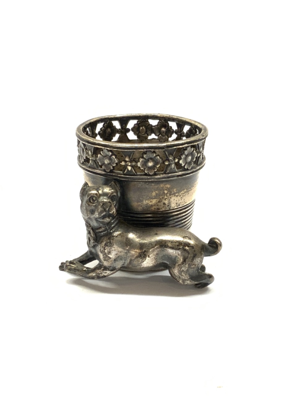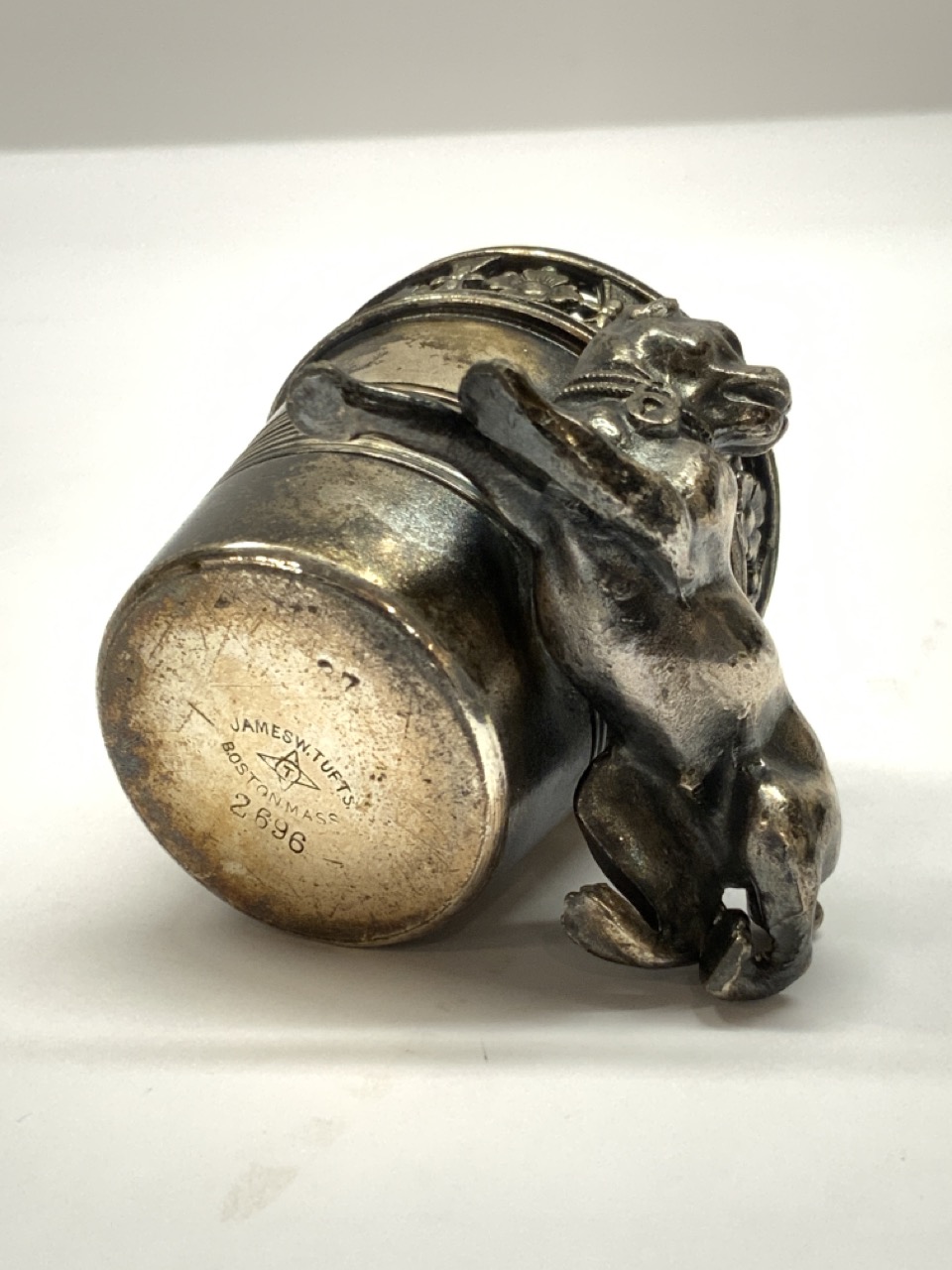 James Tufts Boston 19th century silver plated toothpick holder with dog.