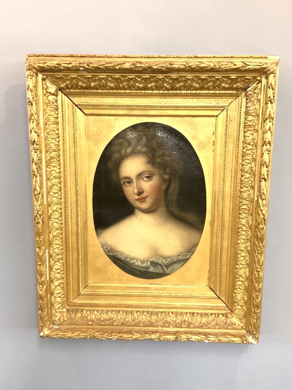 19th c. Lady's Portrait In Gold Gilt Frame.