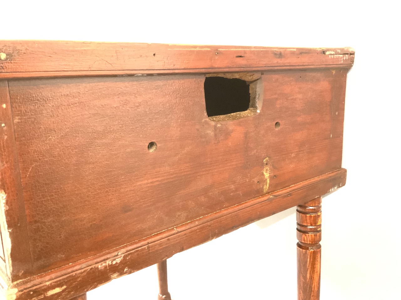 Misc.: Antique teddy bear collection including rare Schuco perfume and double headed compact, Steiff humpback bear, Early growler, mohair bears, 27” straw stuffed mohair bear, Americana jig toy, Dell paperback revolving store display book rack, Pine Bros. Advertising, 19th c. Carpenter’s chest with brass stud work and identified being owned by E.F. Foster of Ridgefield Connecticut, Fine red naugahyde loveseat (chesterfield style) and chair, Chinese marble top center table, Hudson Bay blanket, Navaho blanket, cast iron bear doorstop, antique Delft wall rack, collectibles, books, Fireman’s sand bucket, collection of Christmas “Santa” postcards, memorabilia and much more!