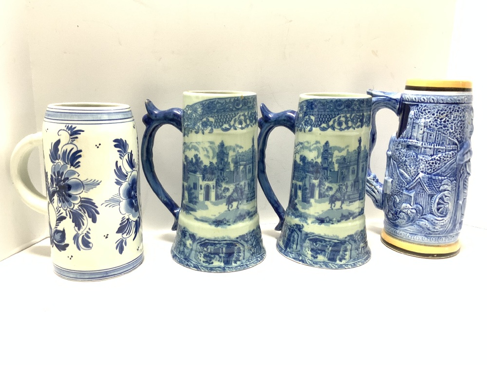Group of Blue & White Beer Steins Includes: