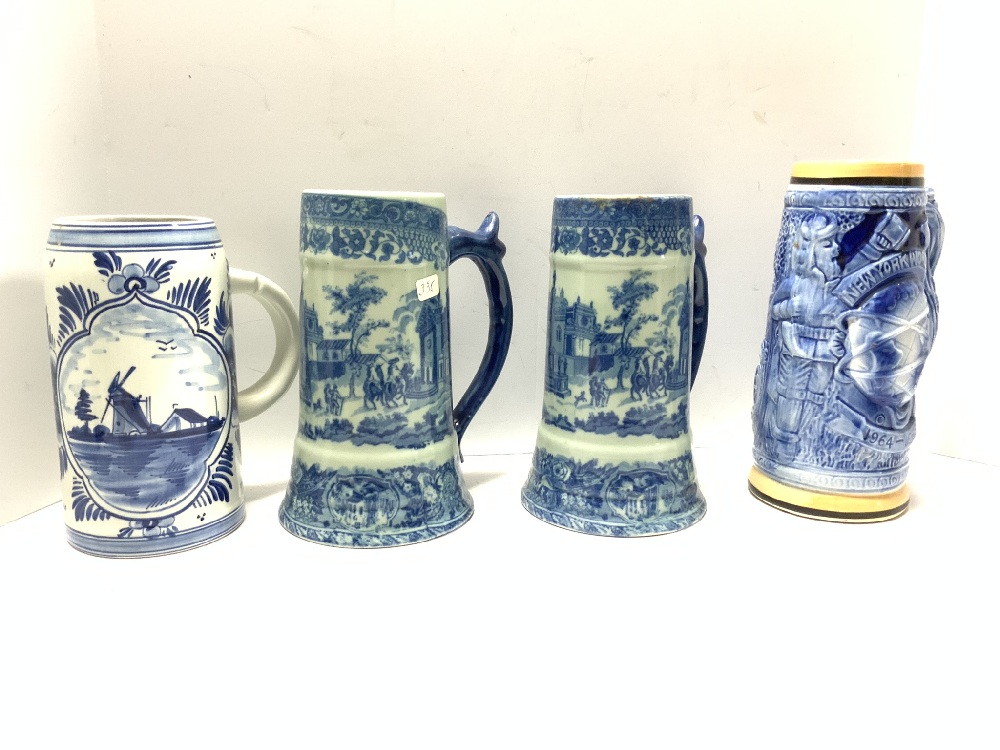 Four (4) Beer Steins including Ironstone, Delfts Holland, New York World's Fair 1964-1965