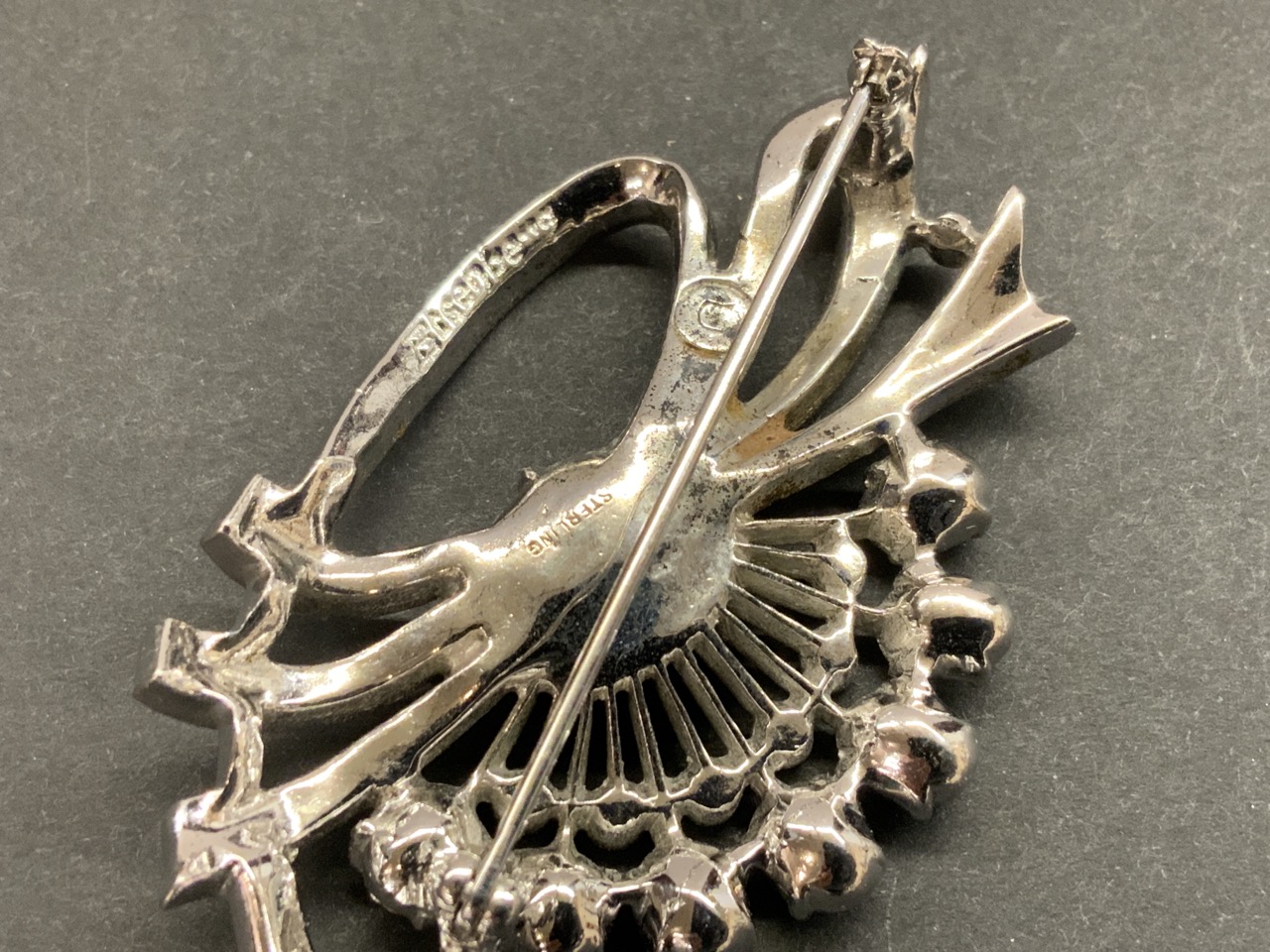 Vintage Eisenberg “Ice” sterling silver costume jewelry brooch.