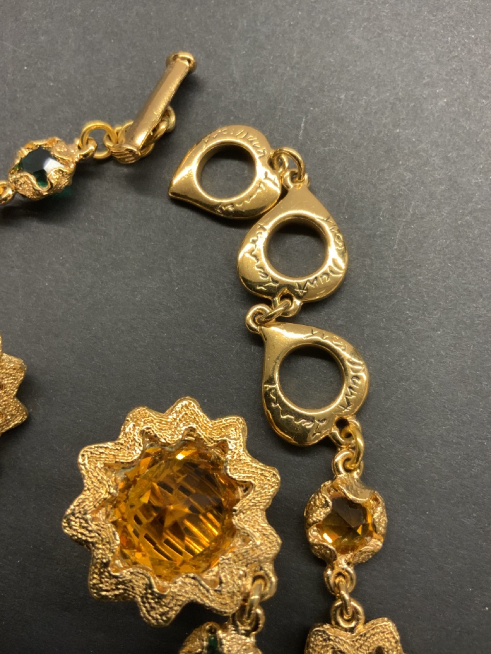 A fine YSL Yves St. Laurent gold tone and glass necklace.