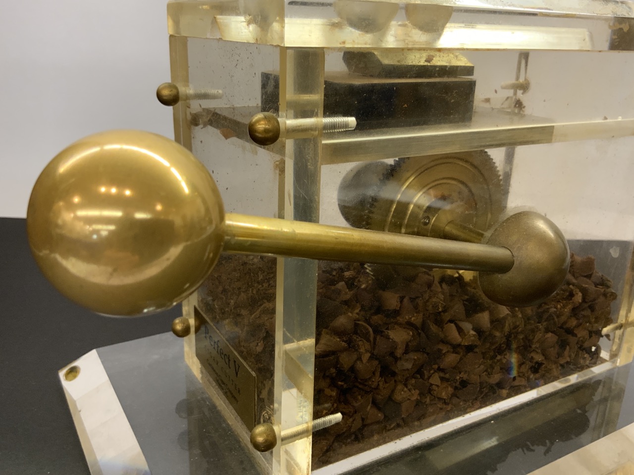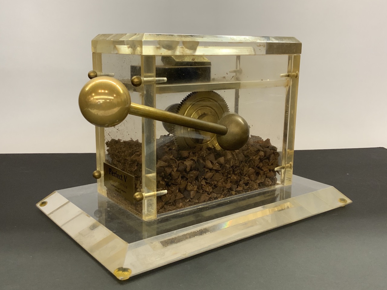 A large high quality lucite and brass cigar cutter.