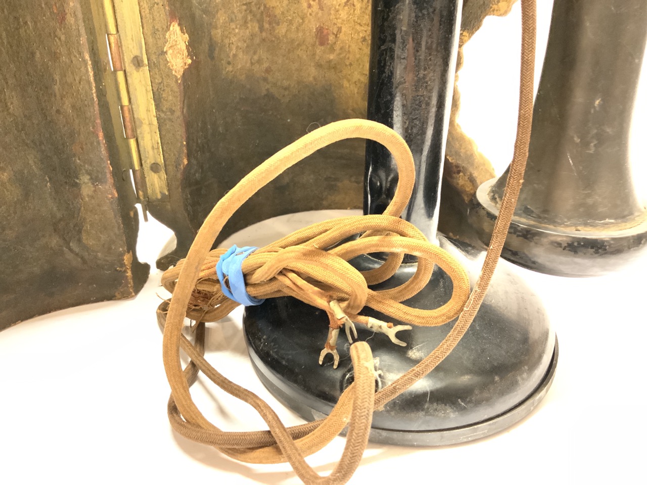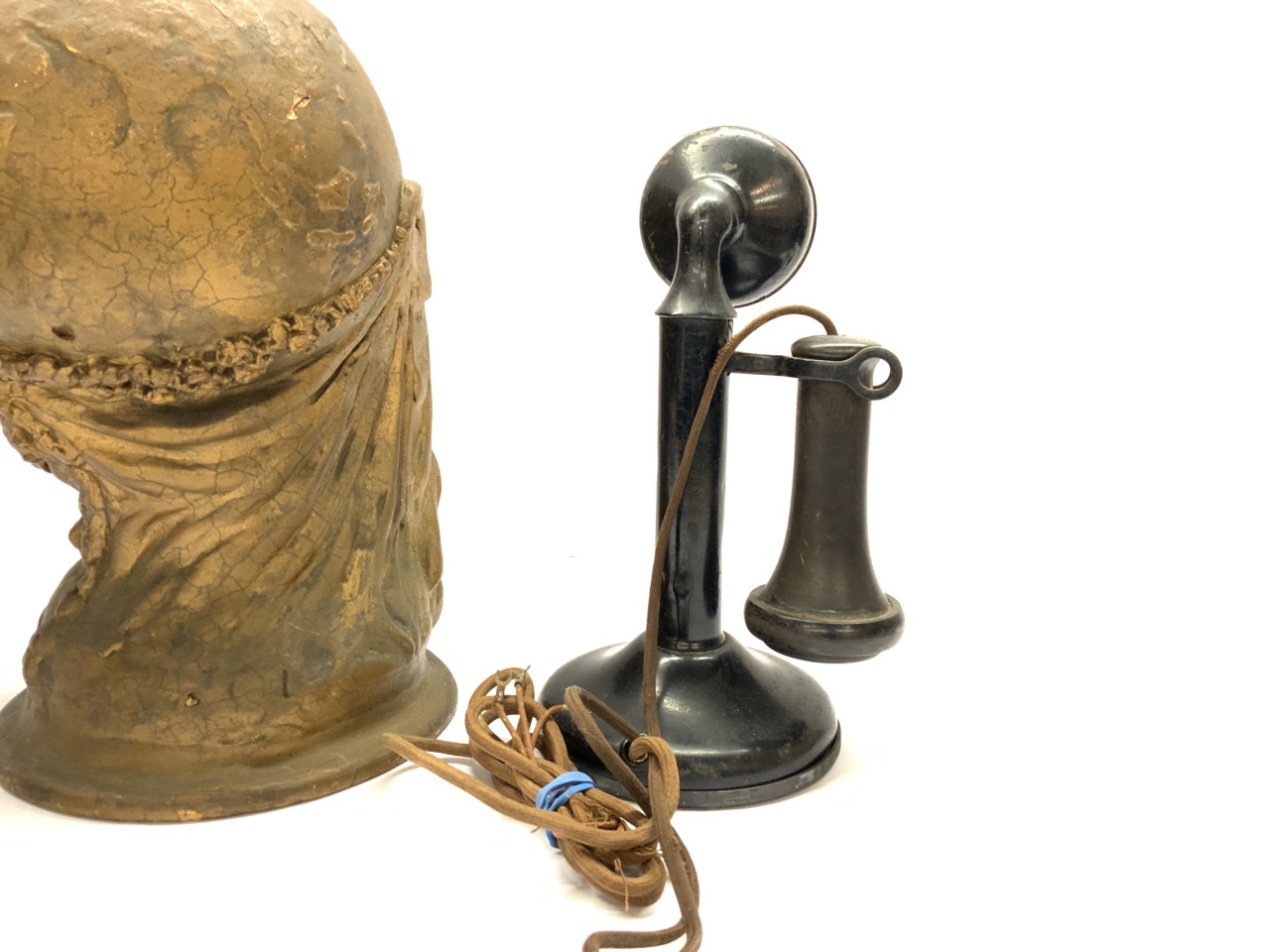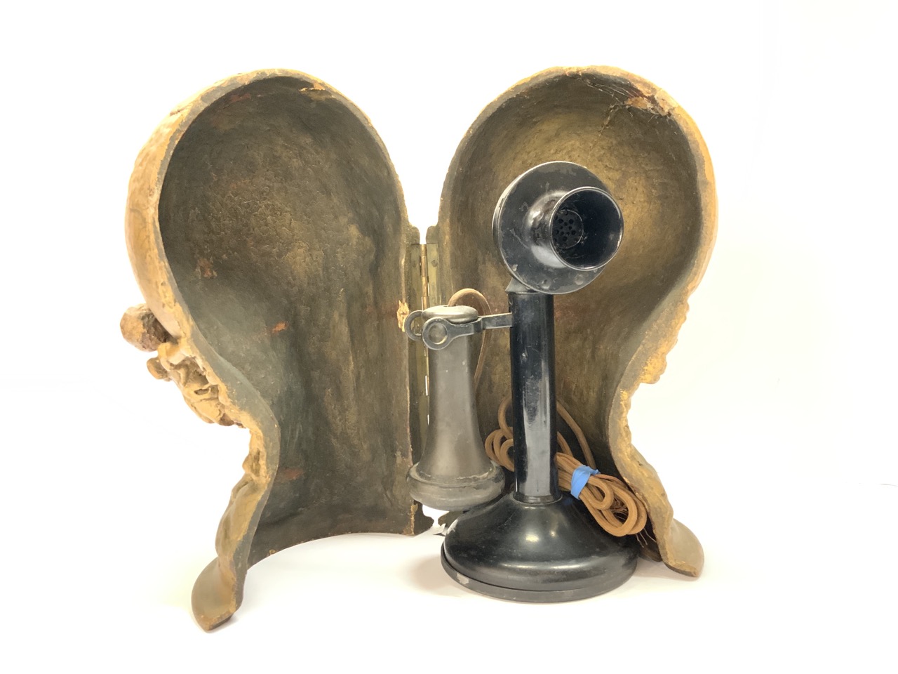 L.C. Mayer copyright rare "Hide-A-Phone" telephone cover. Used to keep the telephone discreetly hidden. Candlestick phone included.