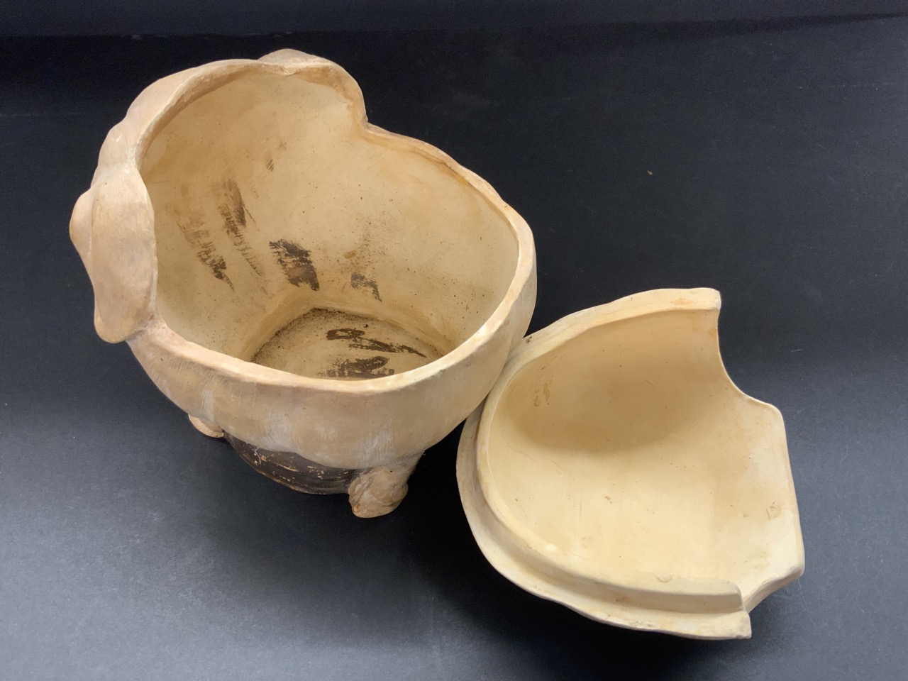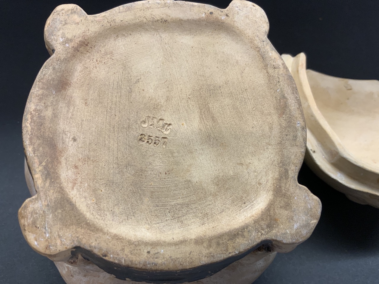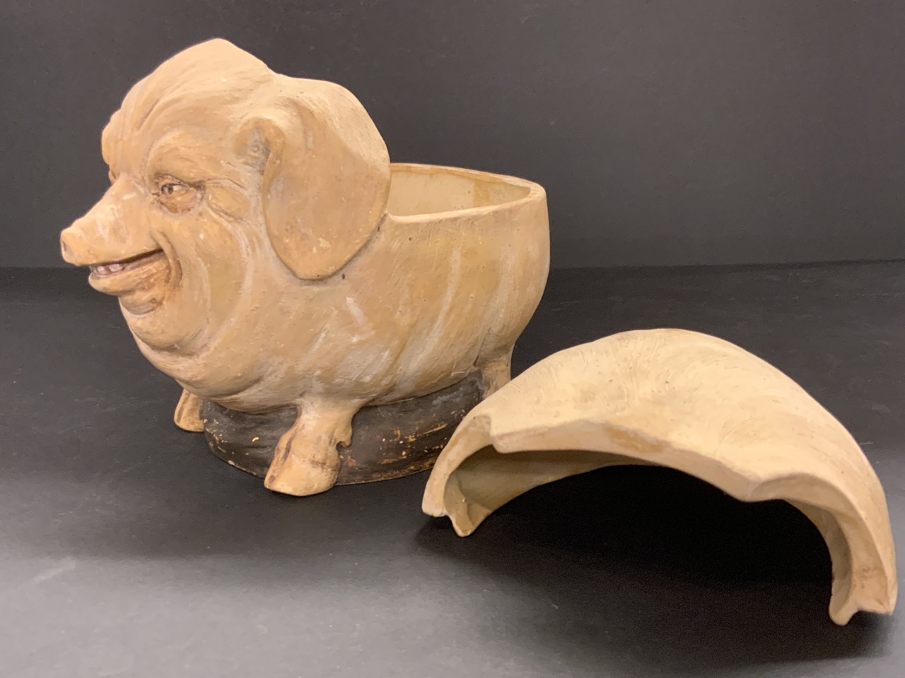 Johann Maresch (German) antique pottery pig tobacco jar. Highly detailed facial features. Barn find in Upstate New York. Very good condition with minimal soiling and paint wear. No chips, cracks or repairs.