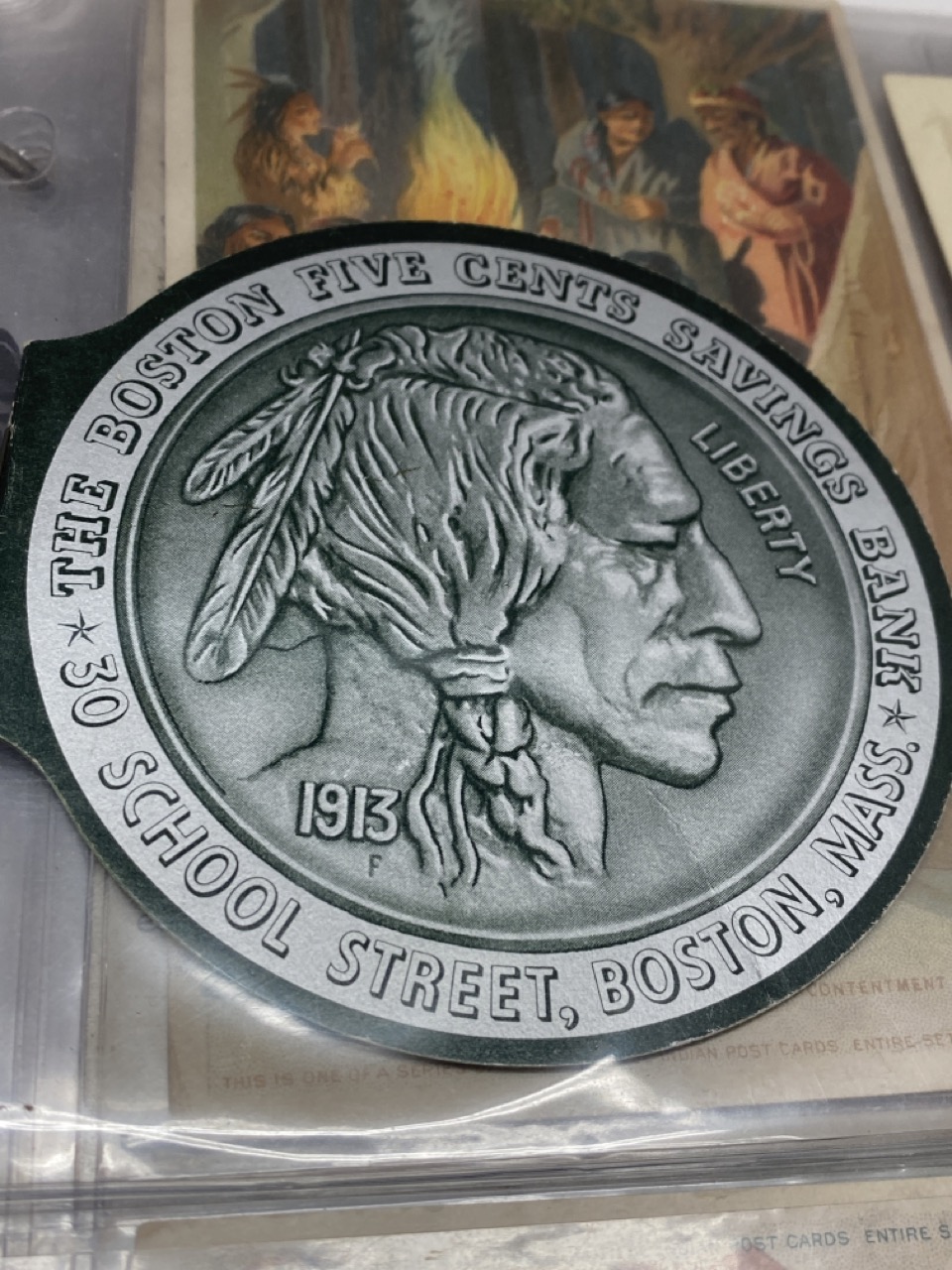 Stero Card, Cigarettes Cloth, Photograph, The Boston Five Cent Saving Bank Nickel Savings Ad, Cleveland, Ohio Views. Mostly early 1900's
