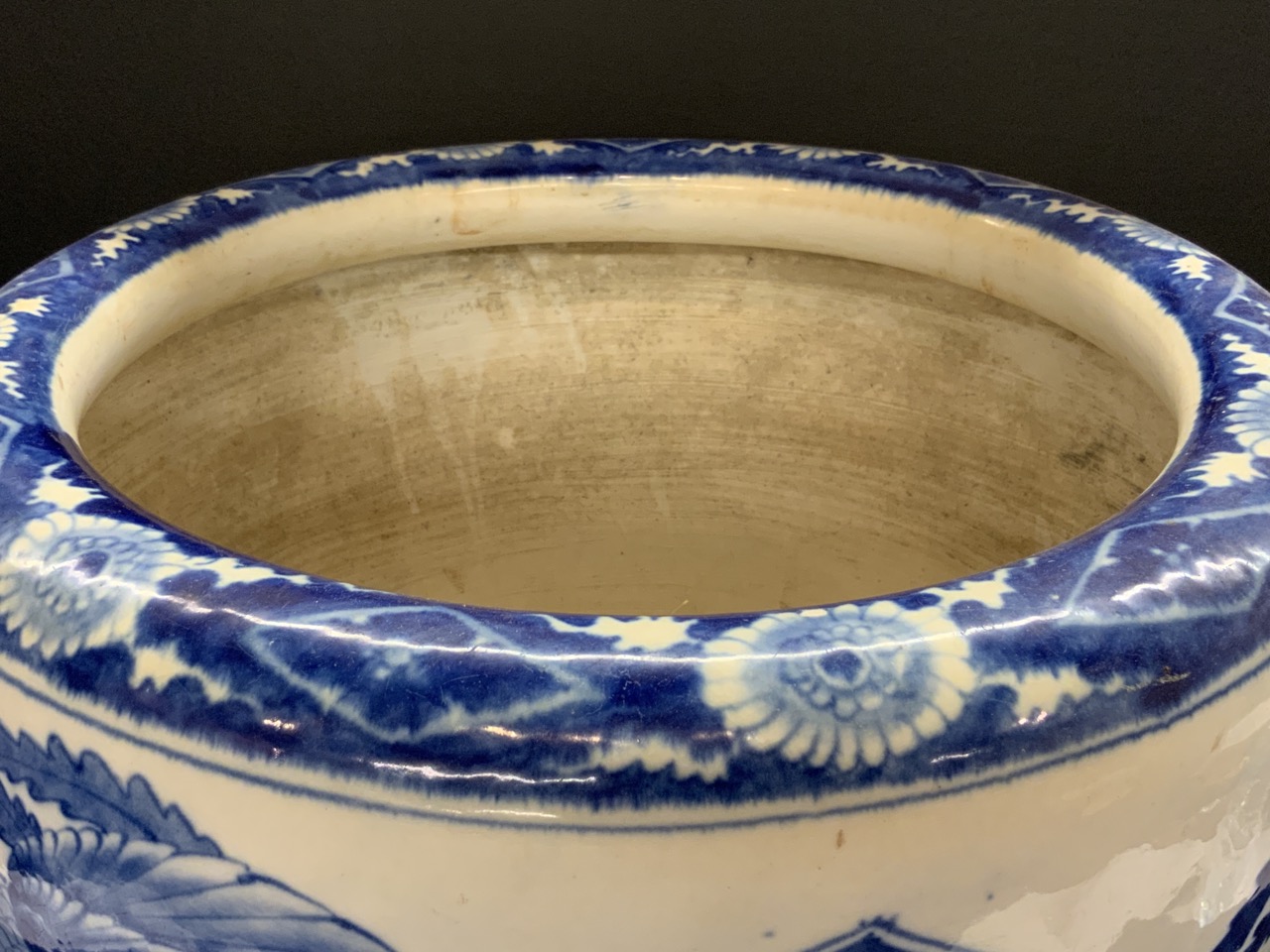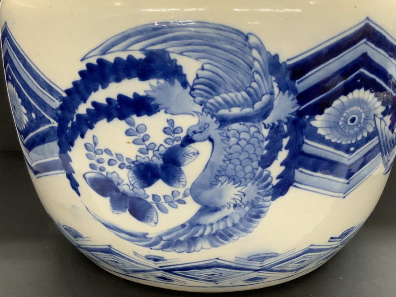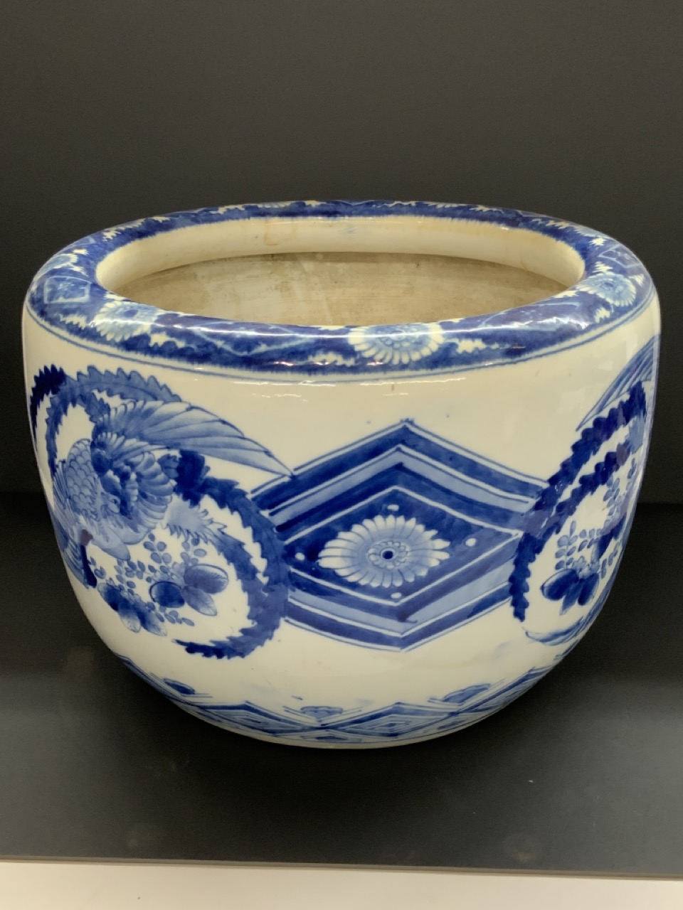 A Japanese blue and white Hibachi.