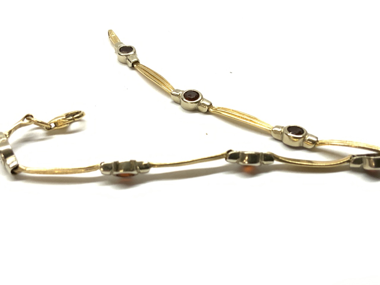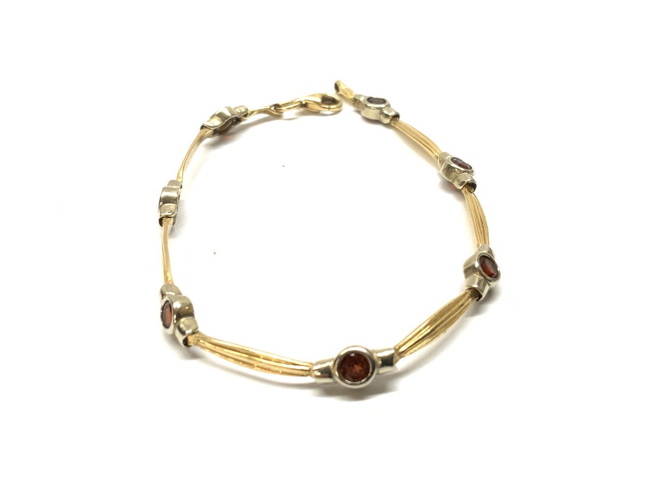 A 14k gold garnet bracelet.