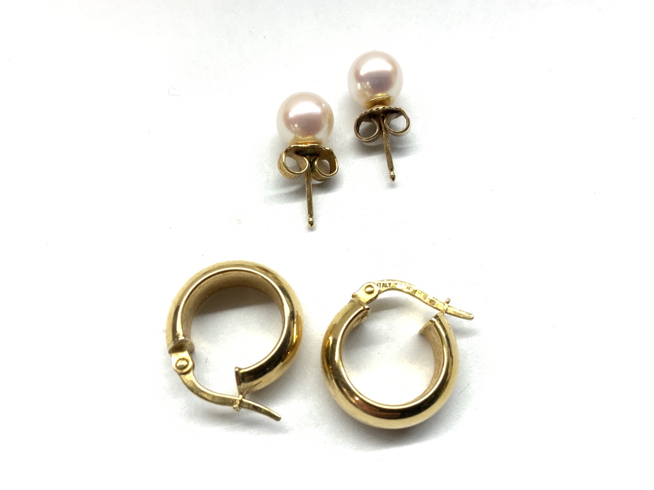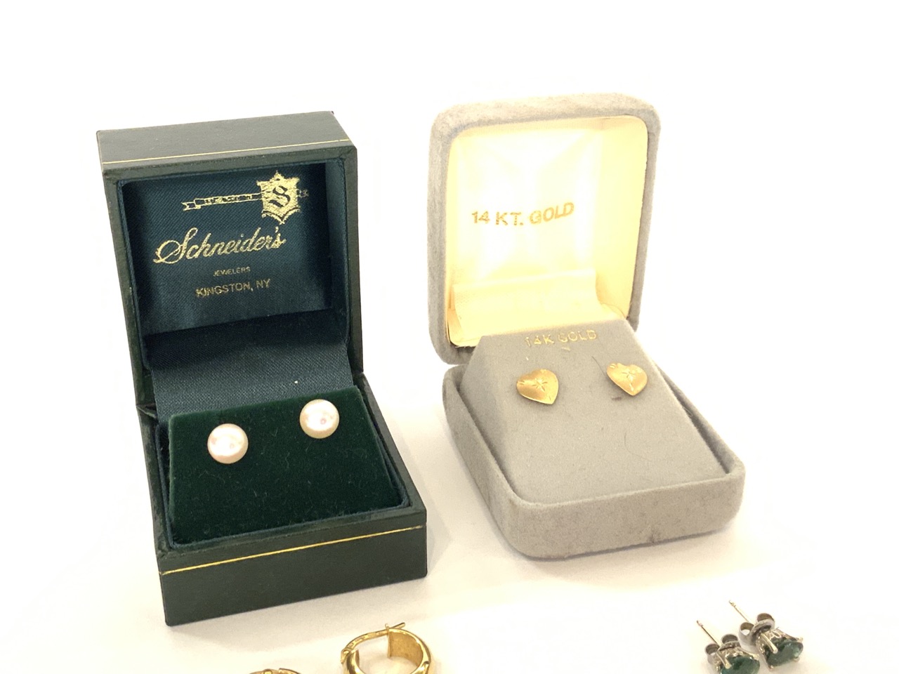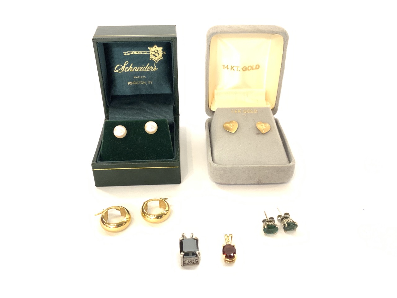 Compiled 14k gold earrings and pendants. As seen in photograph preview.