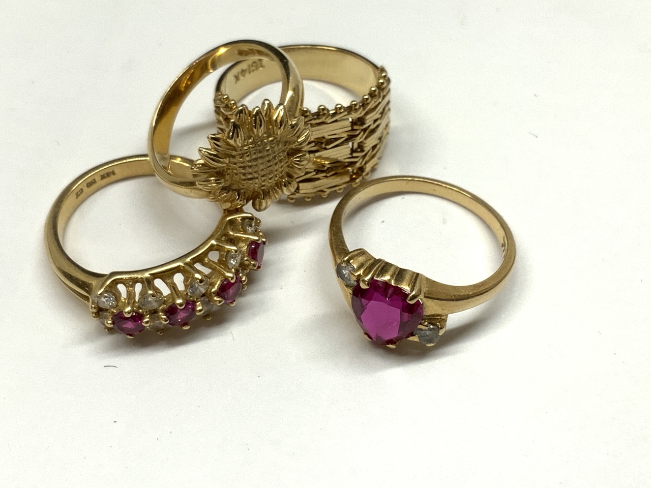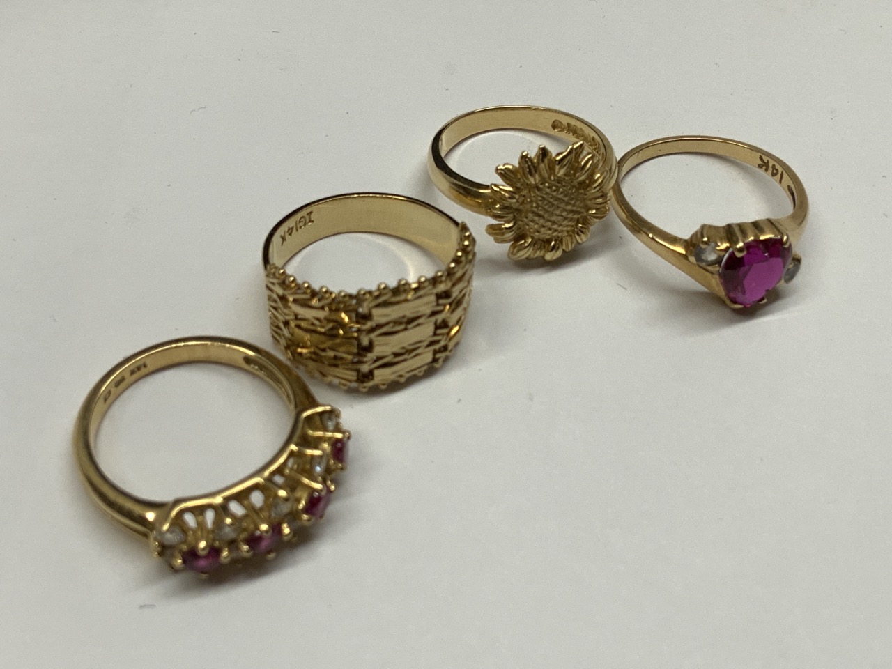 Four (4) 14K y.g. Rings. Sizes 3-4.