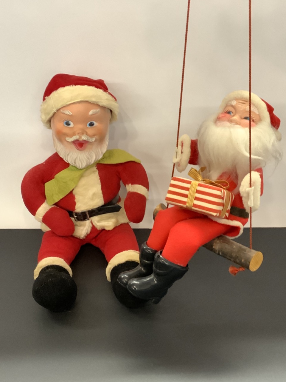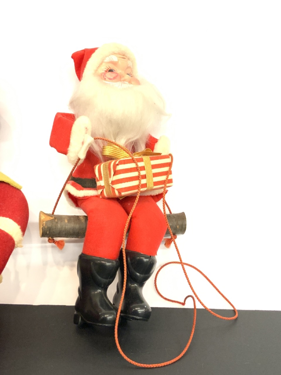 Two (2) vintage santa toys. One on swing and one musical. 1940's /50's