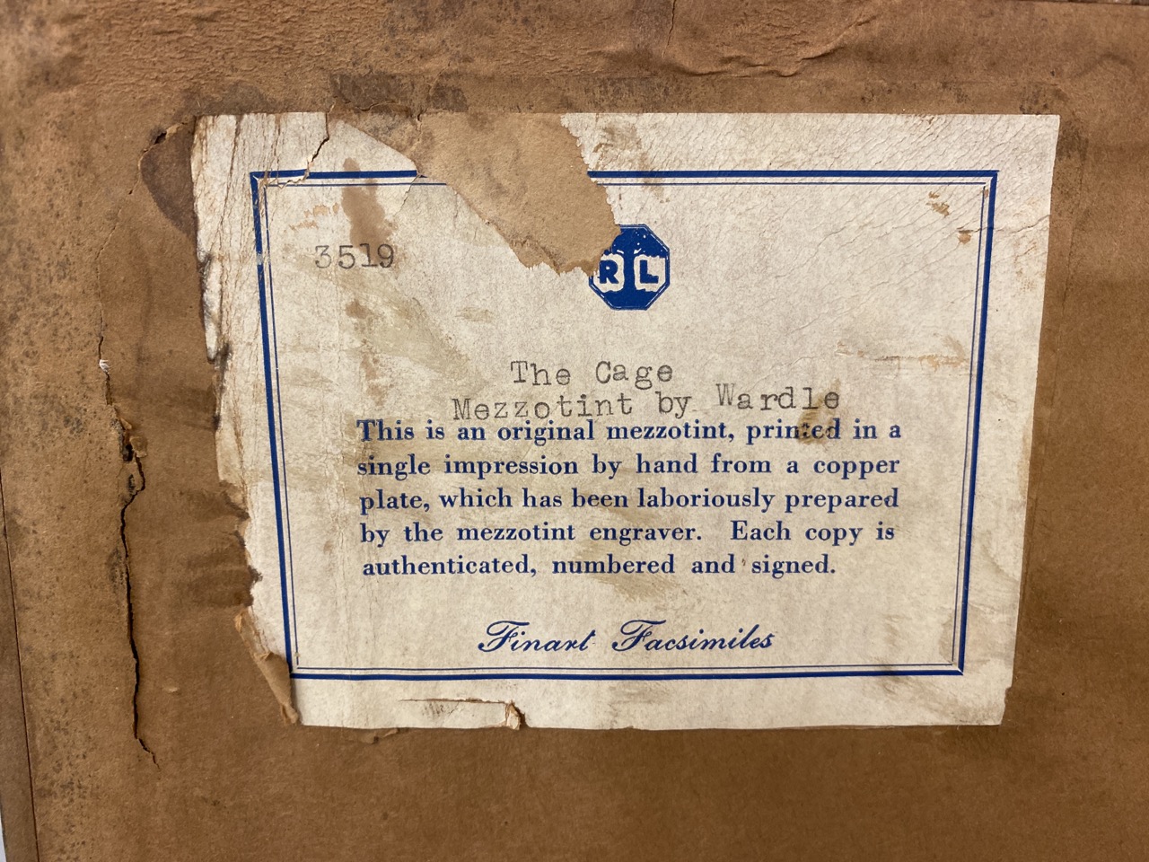 Two (2) Mezzotints “The Lovers” & “The Cage” Pencil Signed by E. Wardle