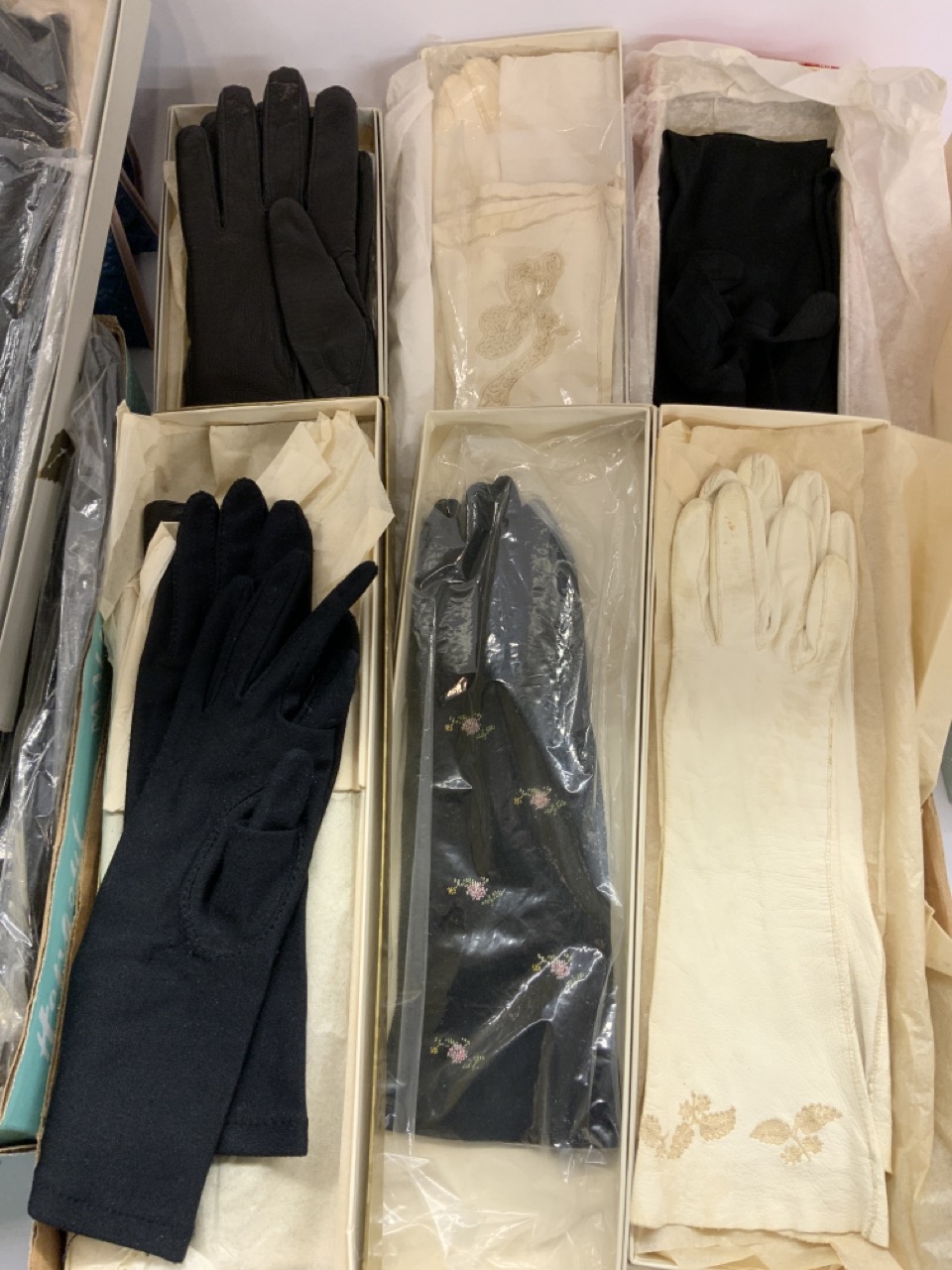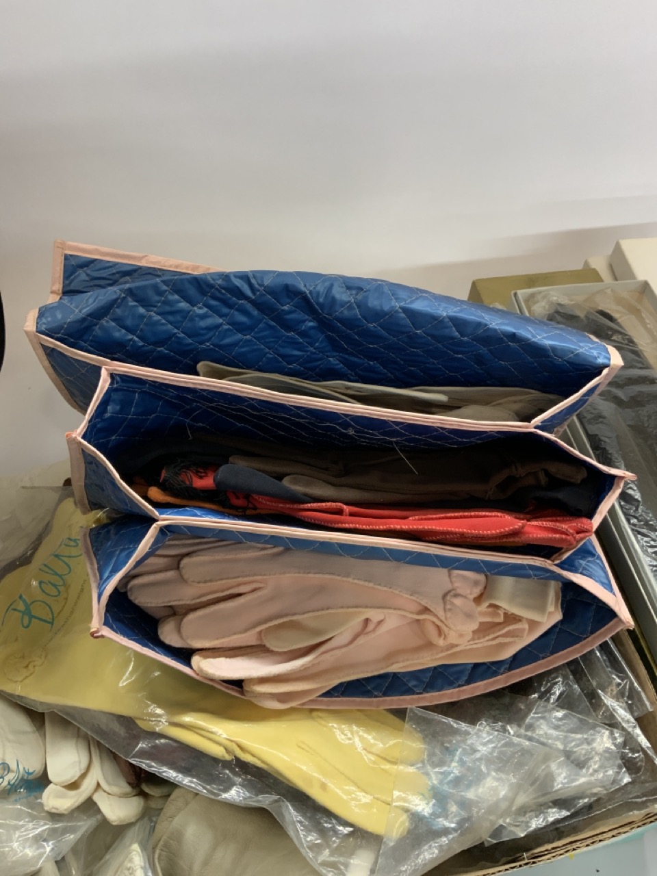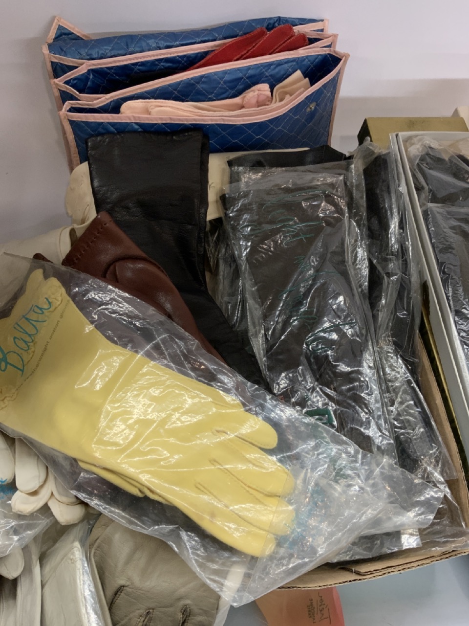 A compiled grouping of leather and assorted fabric gloves. All vintage. As seen in photograph preview.
