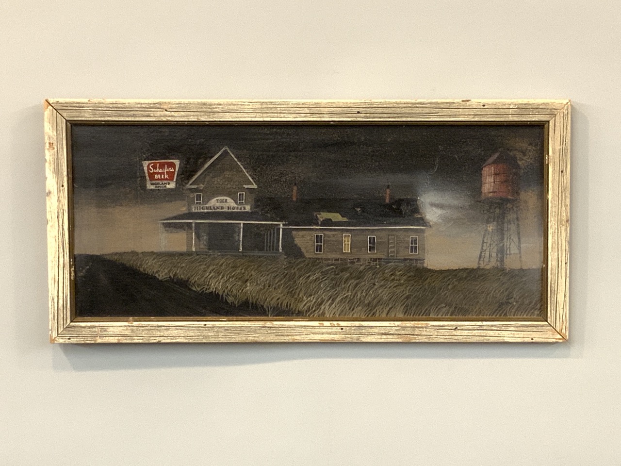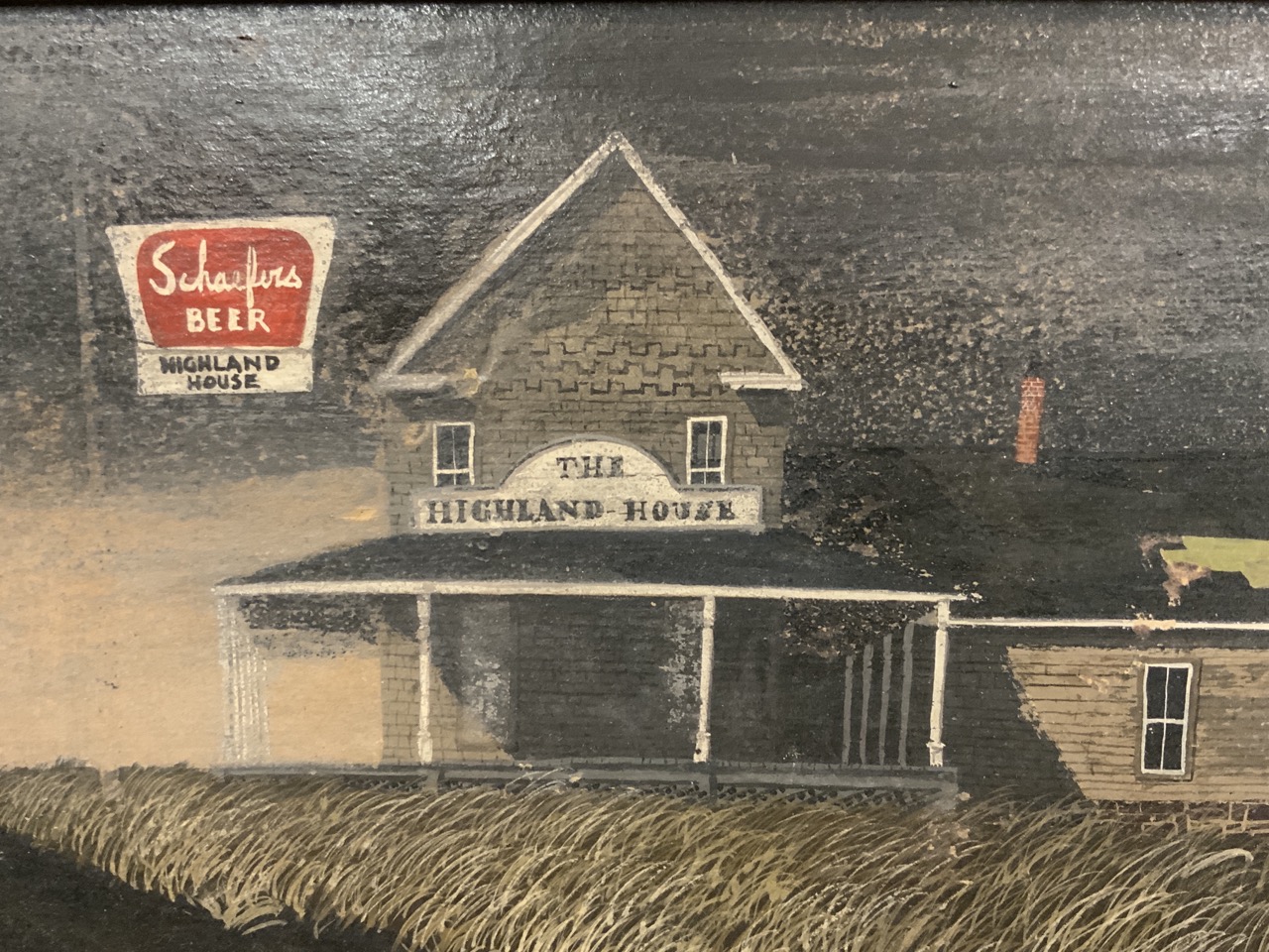 Roadside abandoned looking saloon/tavern with Schaefer Beers advertising on sign.