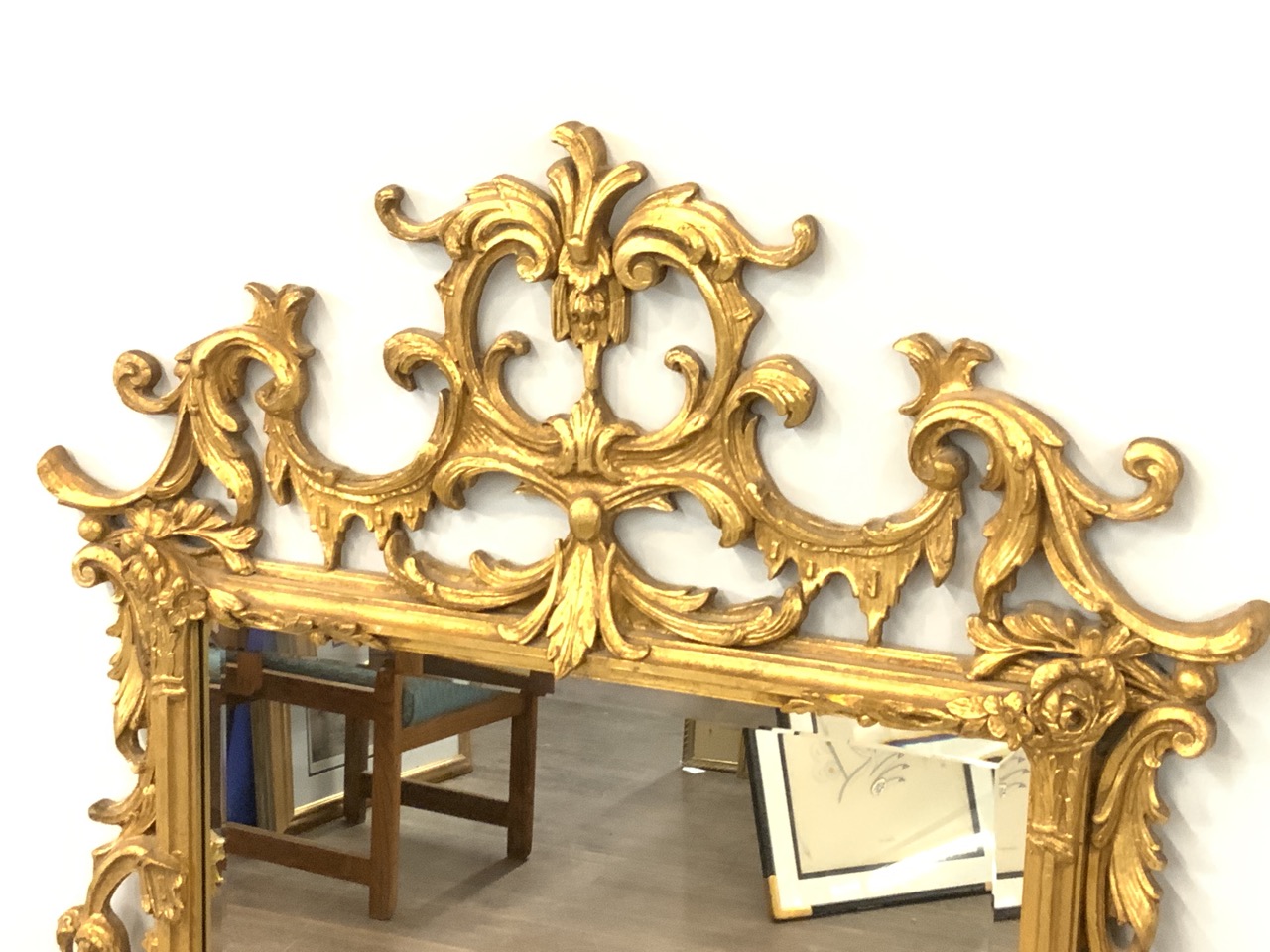 Large giltwood wall mirror. Mid 20th century.