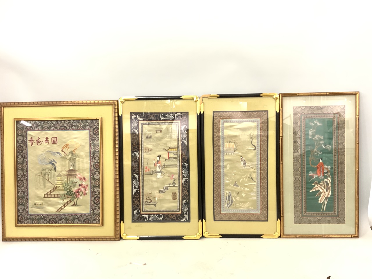Four (4) Piece Japanese Works on Silk.