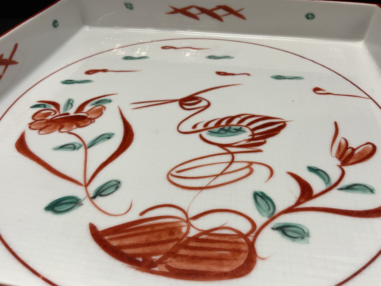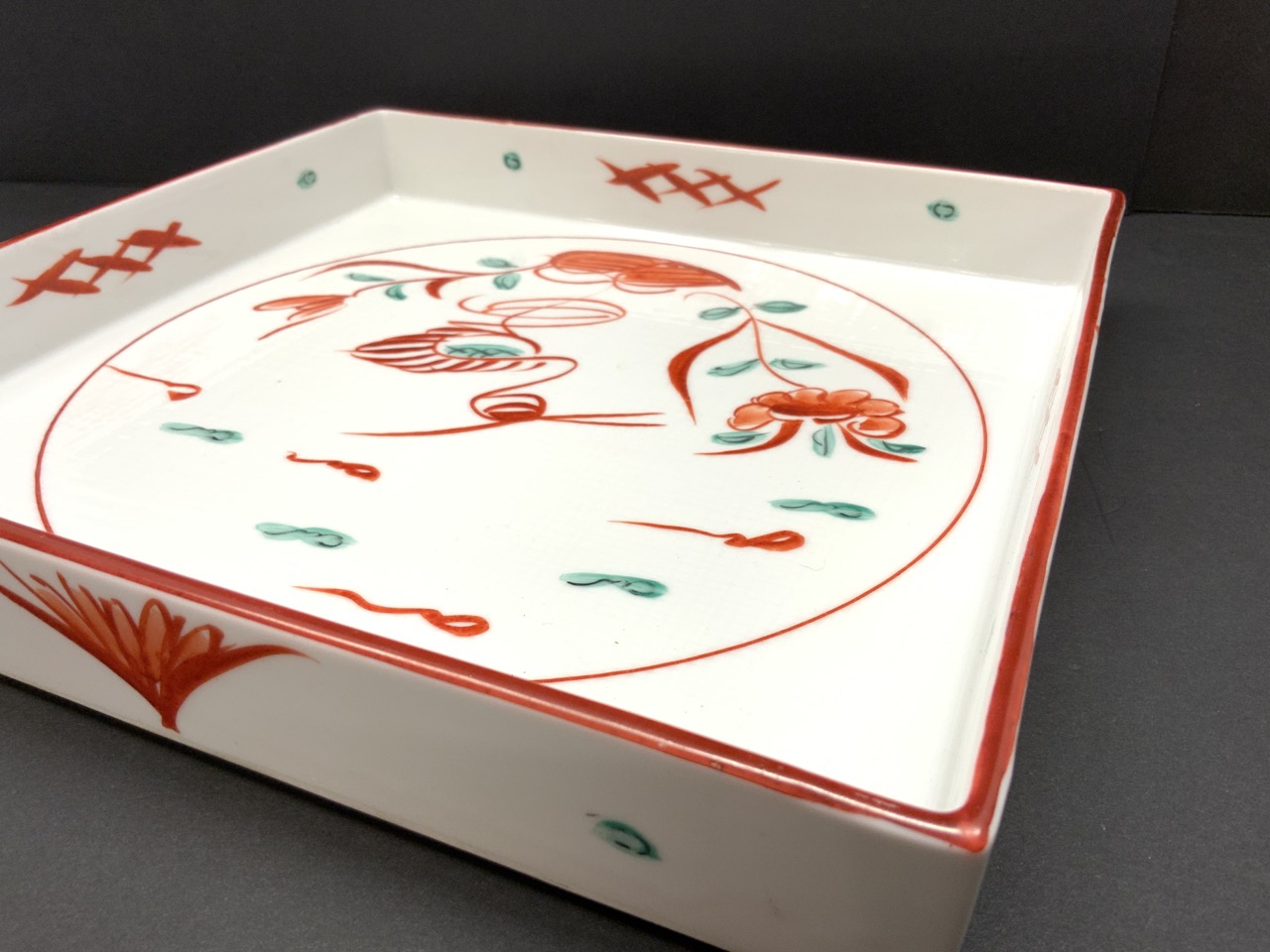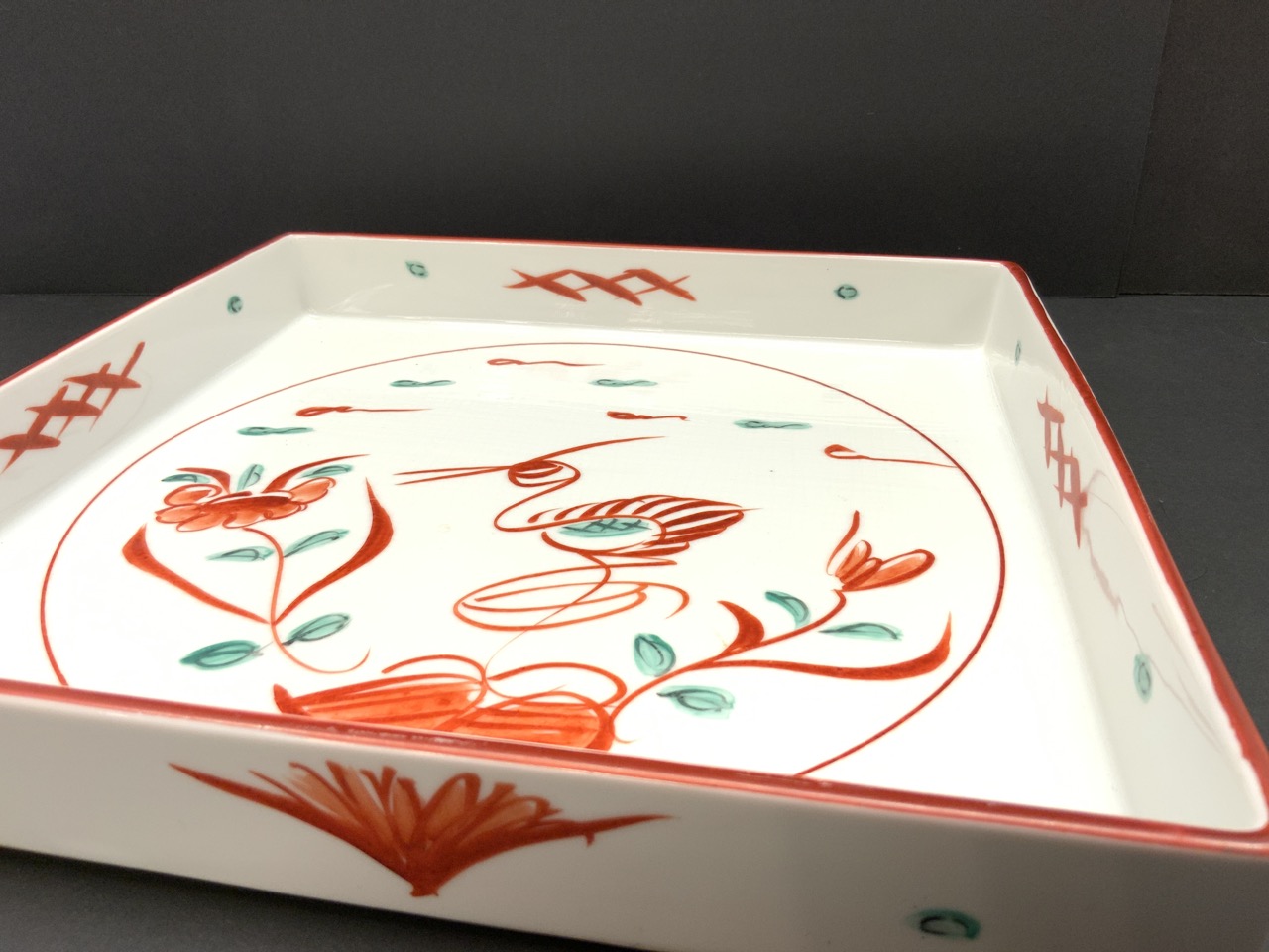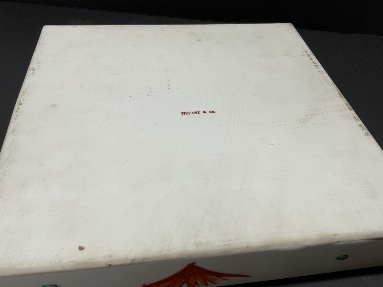 A Asian theme decorated porcelain dish. Signed Tiffany & Co.