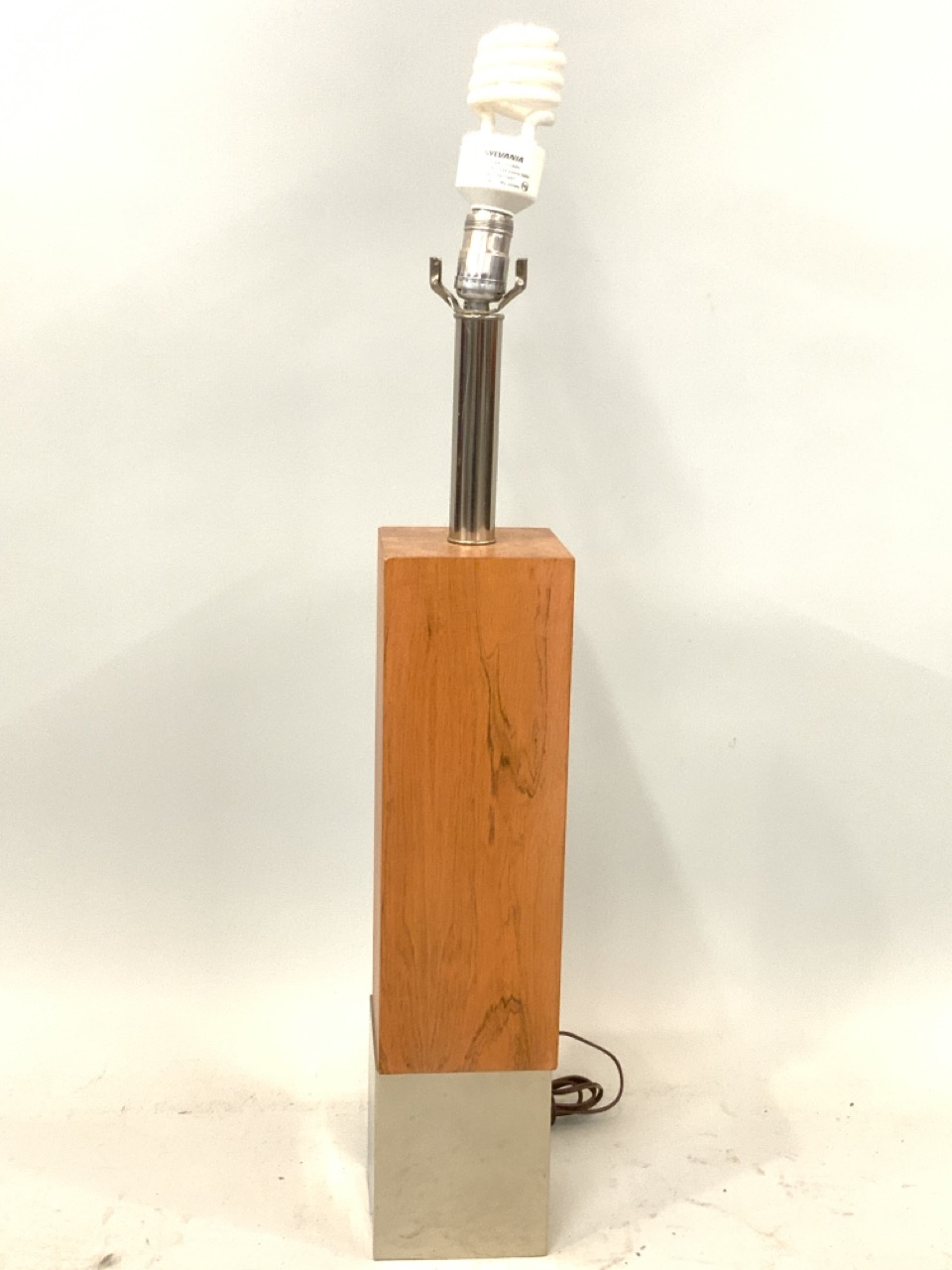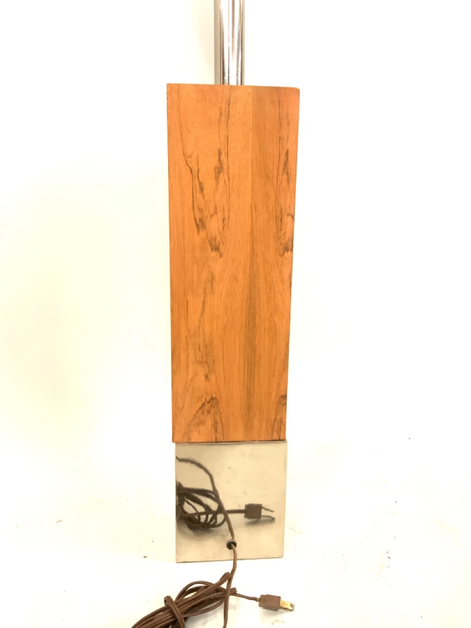 1970's chrome & wood table lamp.