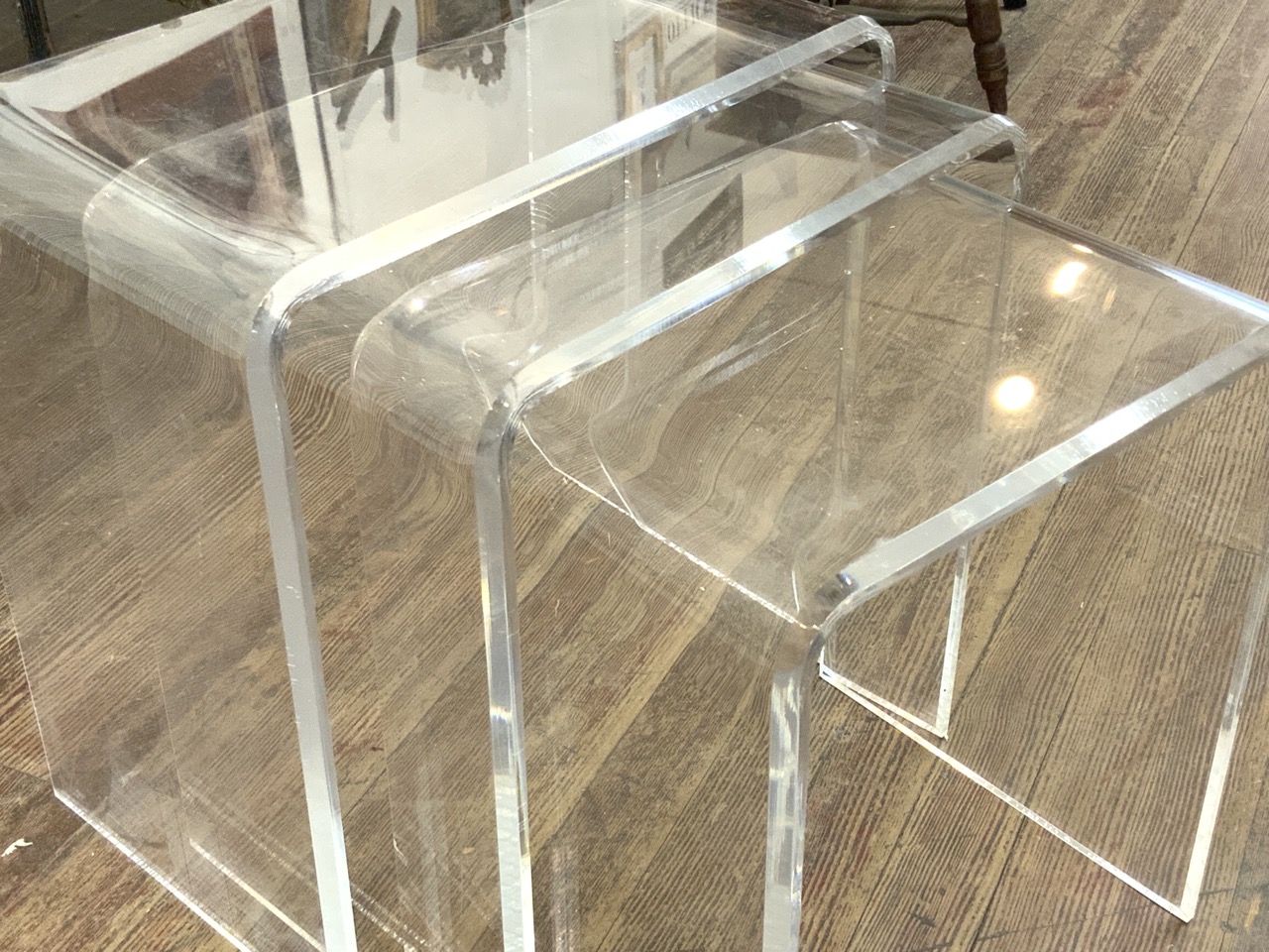 Three (3) Lucite nesting tables. Some scratching as seen in photograph preview.