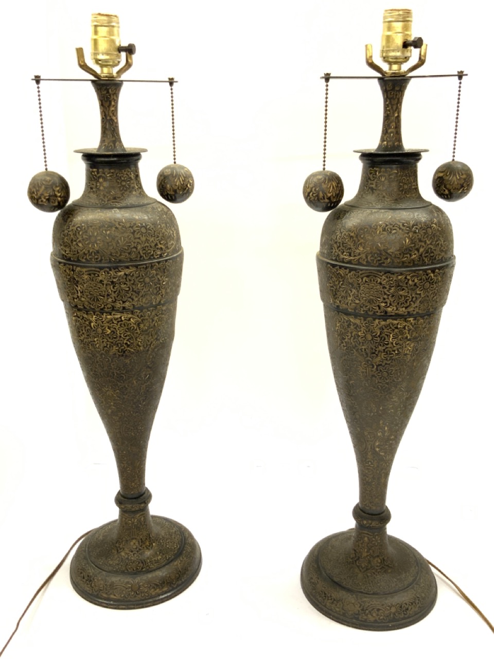 Vintage Bohemian feel large decorator table lamps. A very Bohemian feel with ball pulls. Made in India.