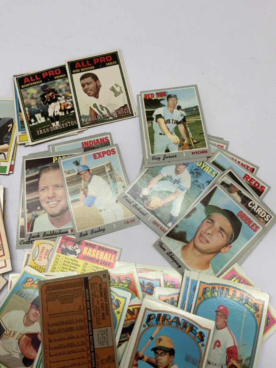 Compiled estate found football and baseball cards. As seen in photograph preview.