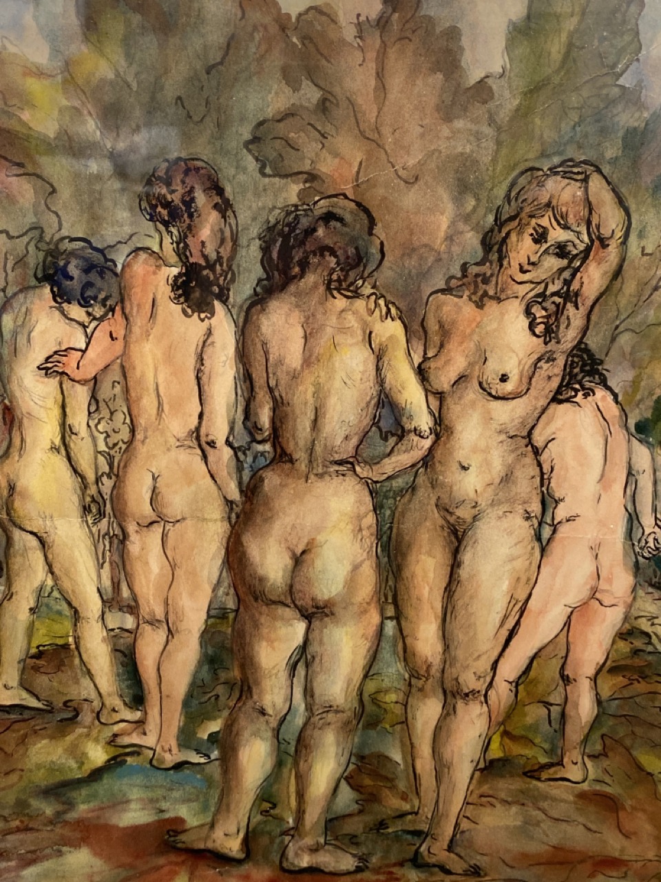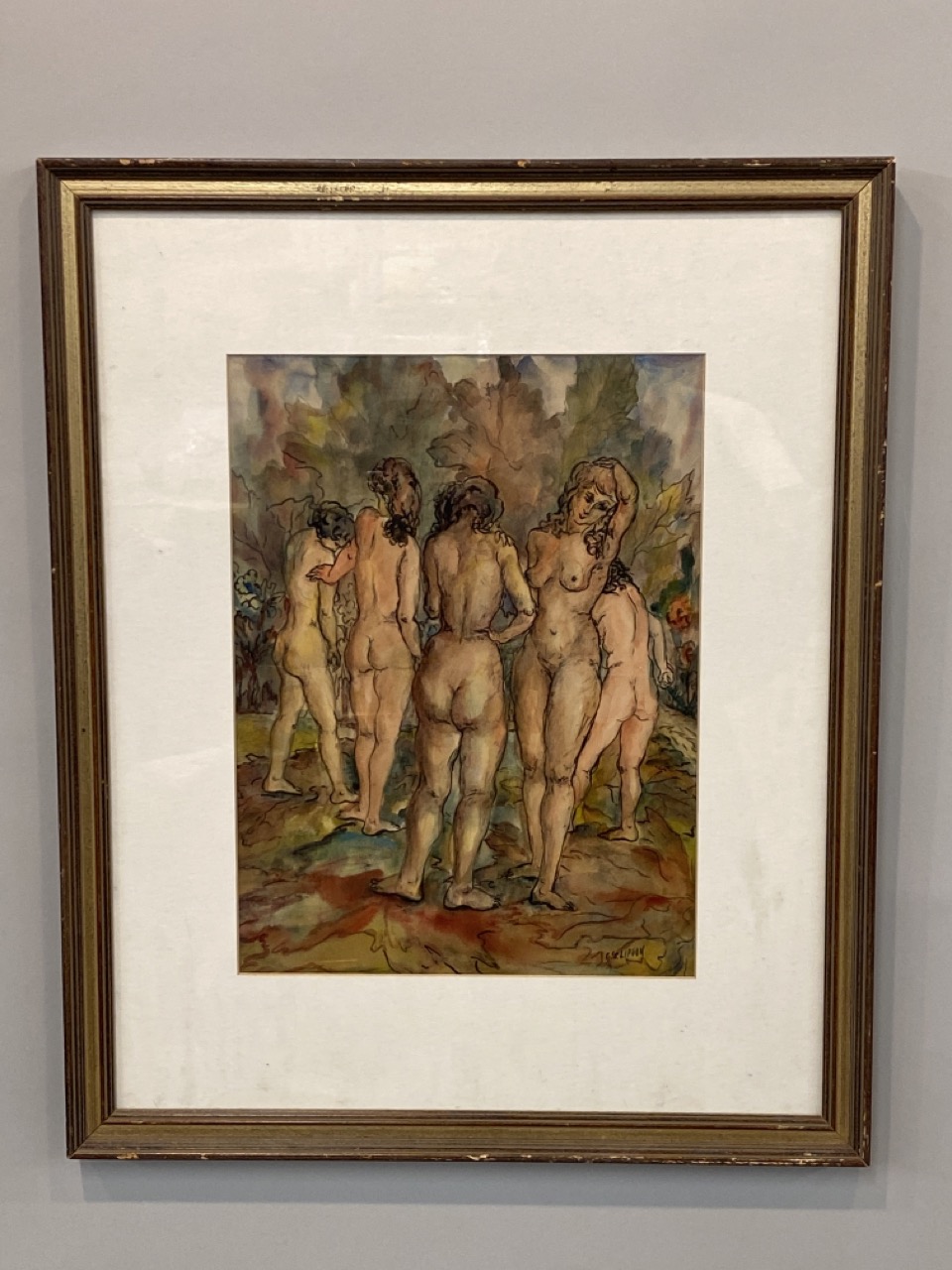 1942 Goldie Lipson Signed “5 Nudes” Watercolor on Paper