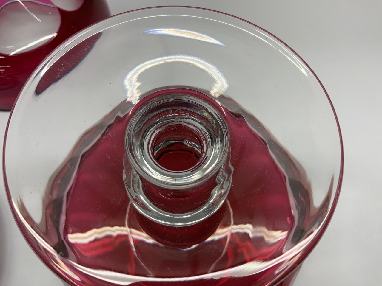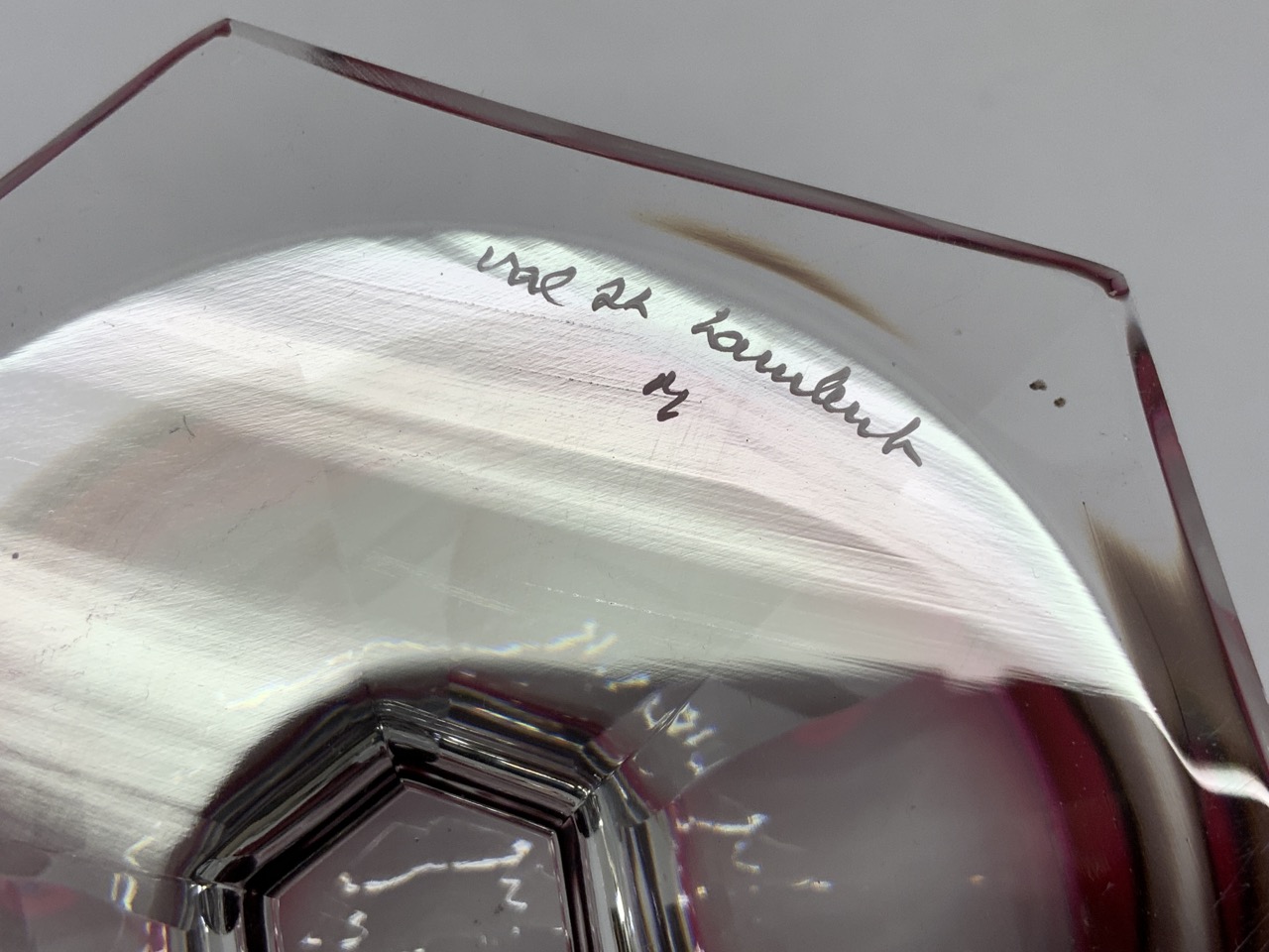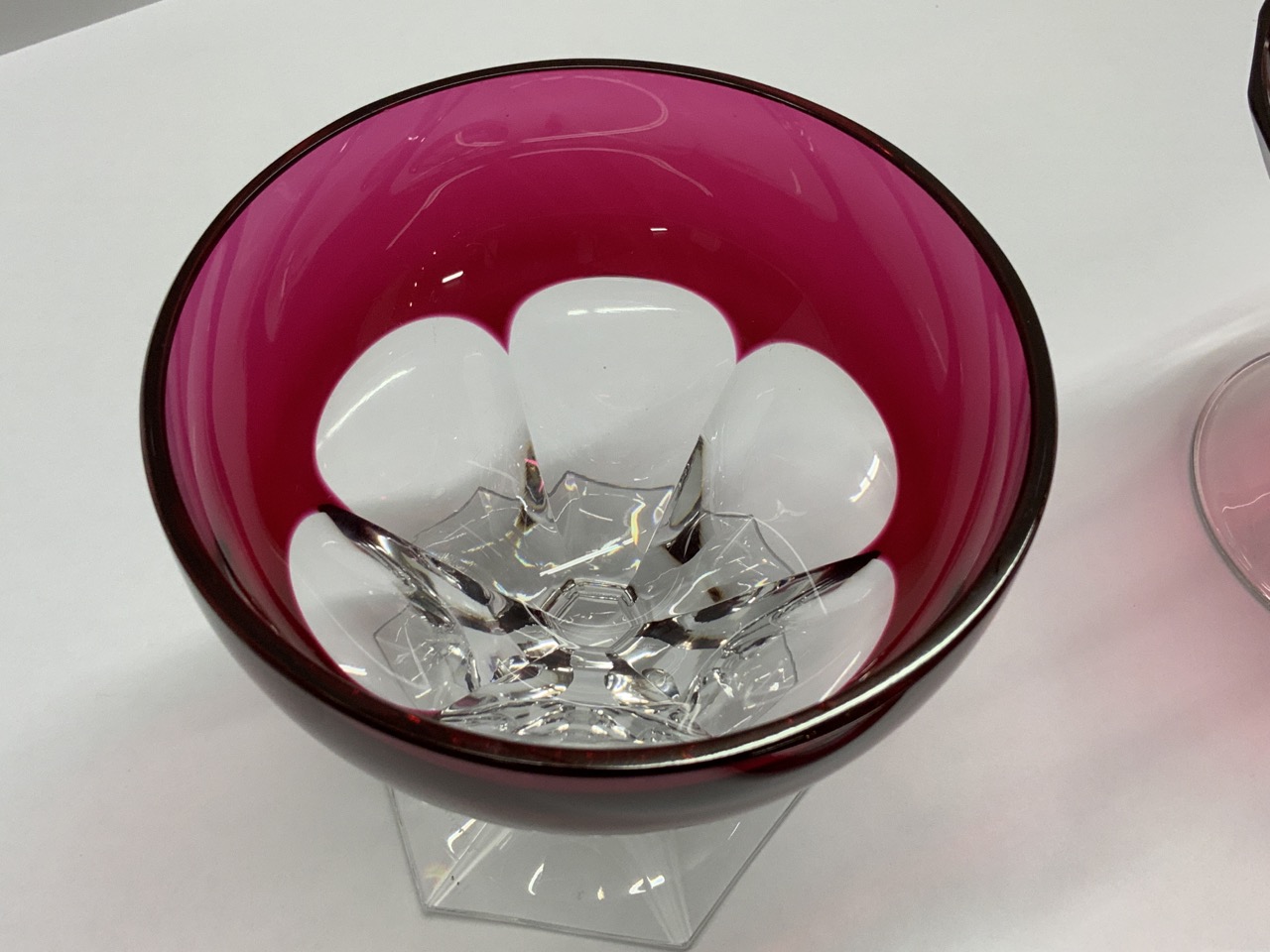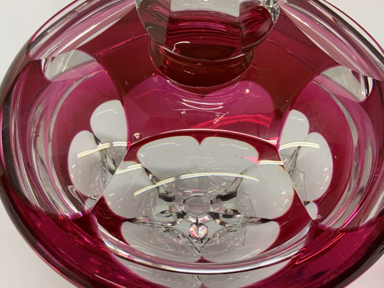 Val. St. Lambert cranberr y cut to clear lidded jar and compote. Signed at base.