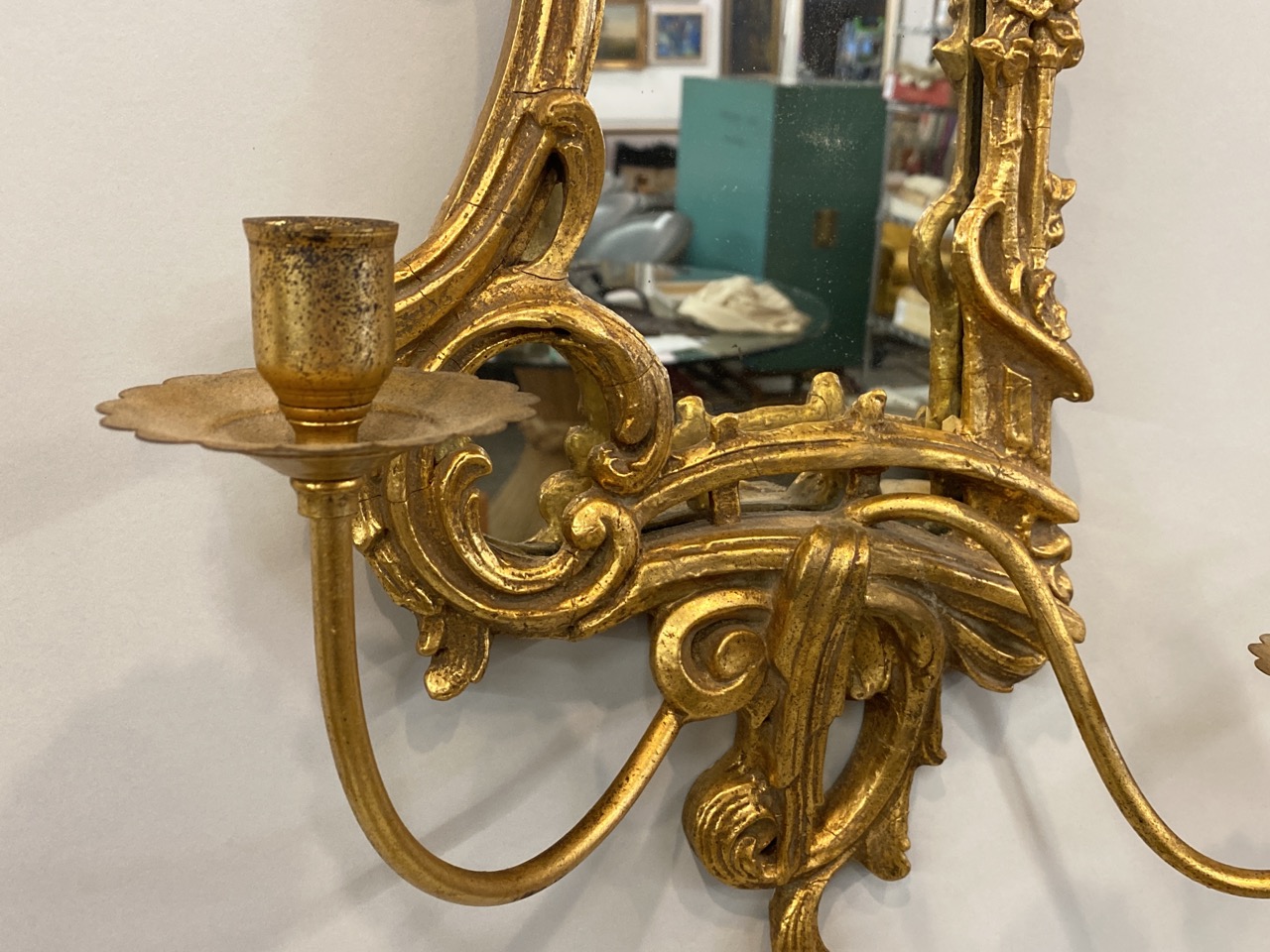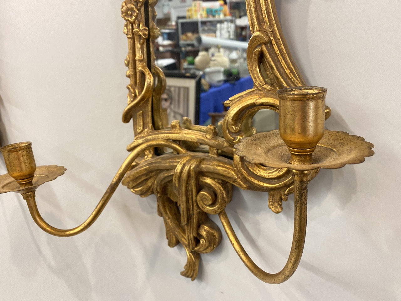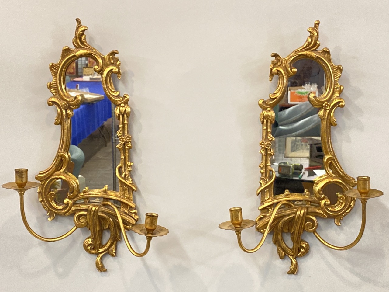 Pair of Gold Gilt Mirrored Sconces