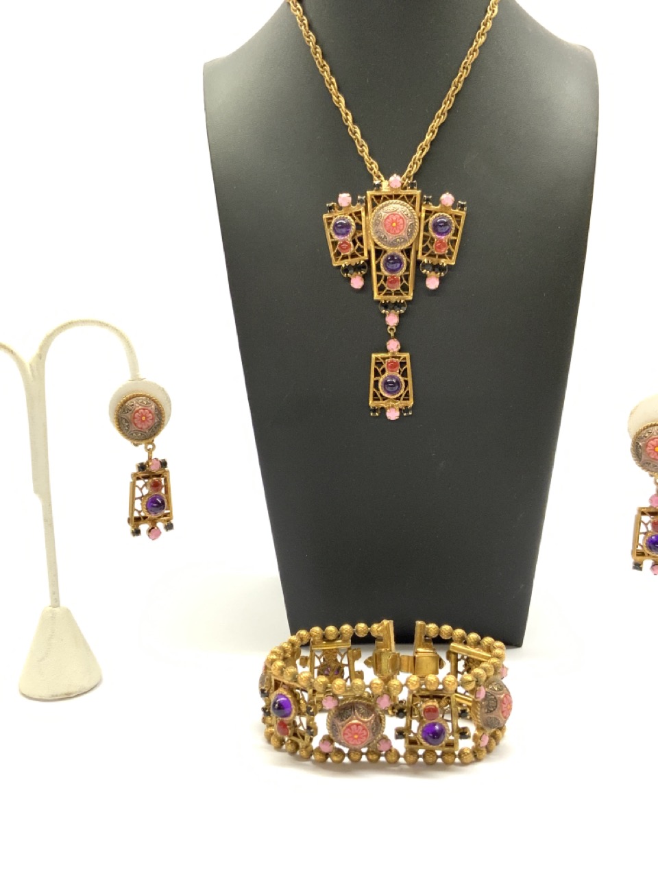 Vintage costume jewelry Parure set. Probably Czechoslovakian. Unsigned.