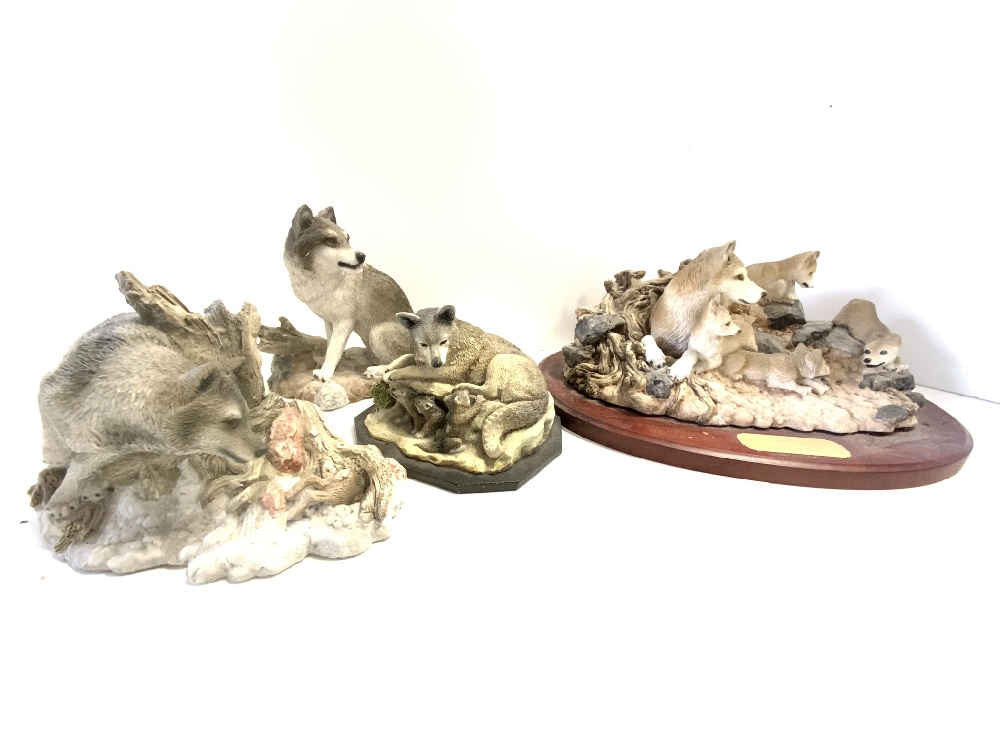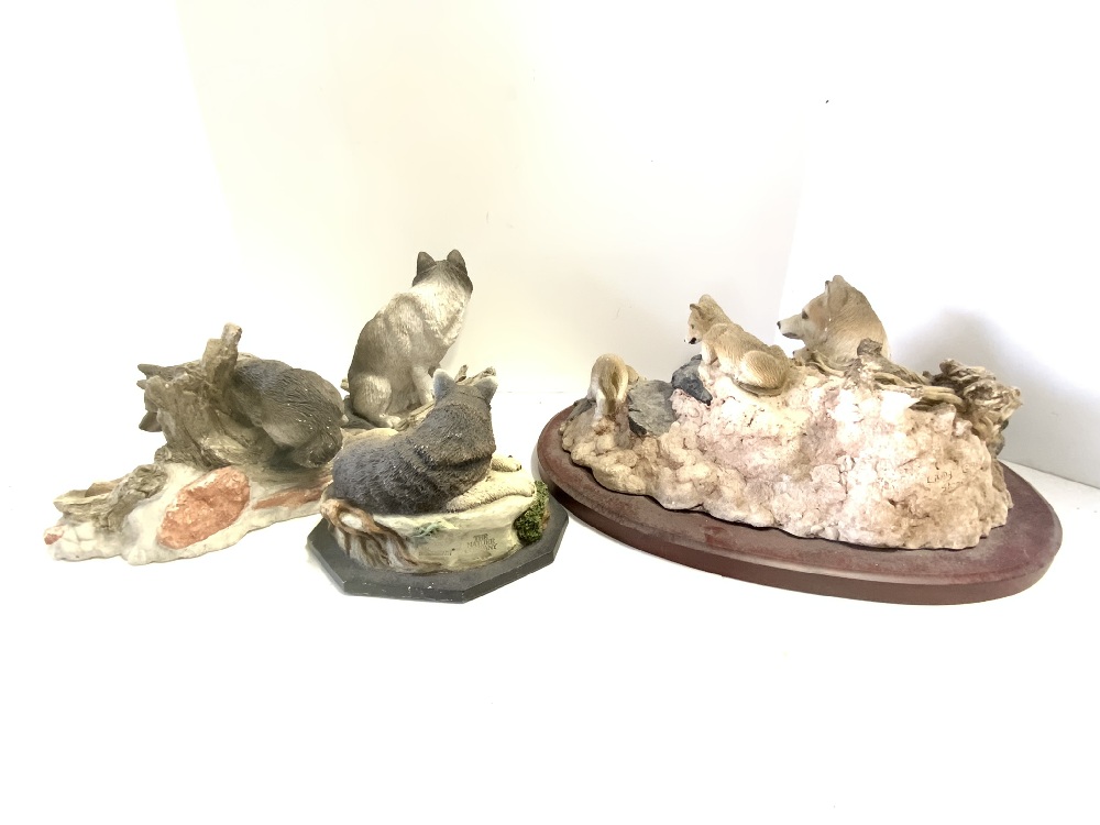 Lot of Three (3) Wolf Sculptures Includes: