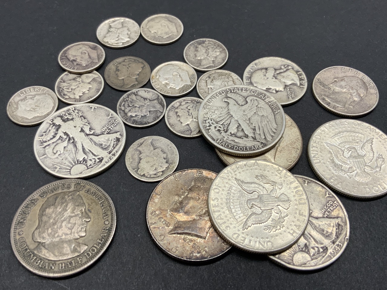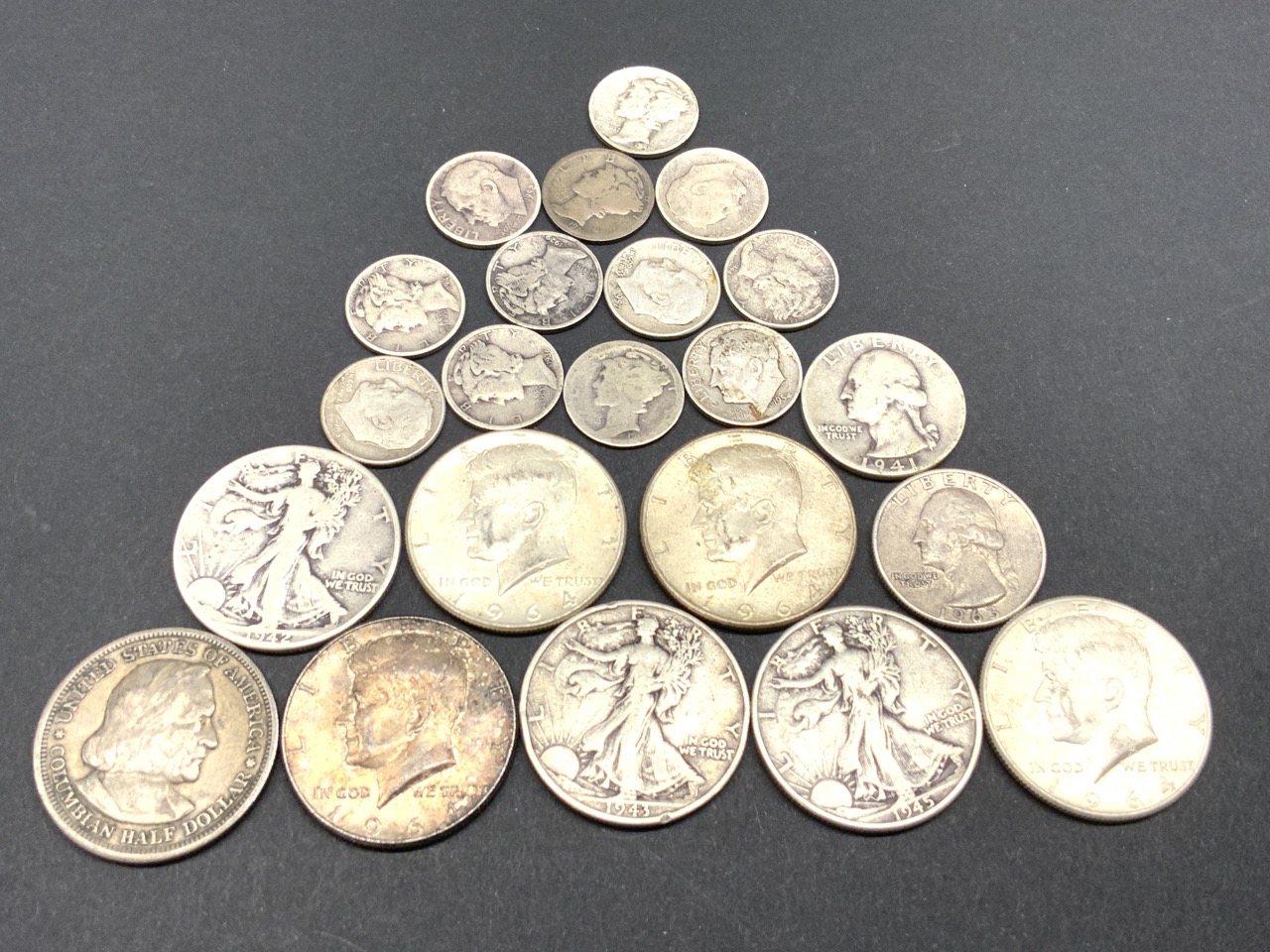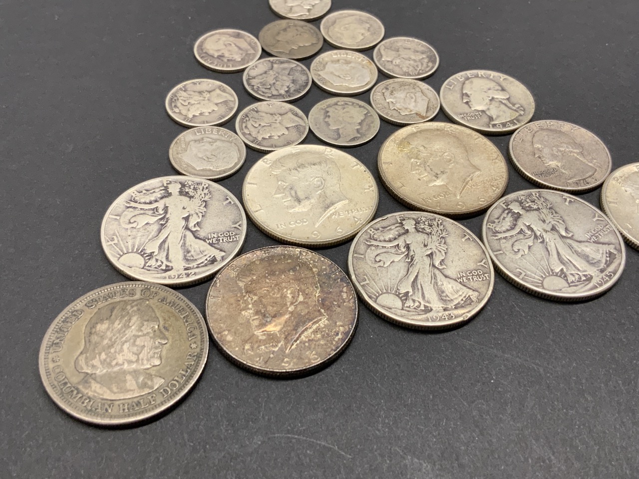 Estate compiled U.S. silver coin group including half dollars, quarters and dimes. As seen in photograph preview.
